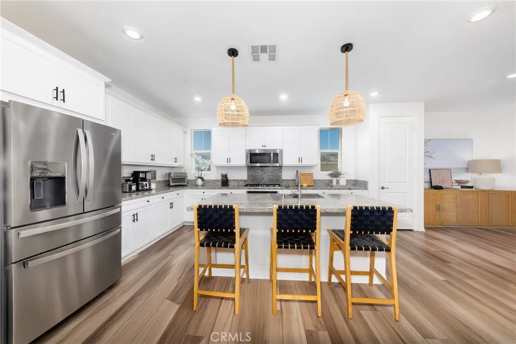 Welcome to your dream home in North Fontana! This BEAUTIFUL stunning 3-bedroom, 2.5-bath home offers over 1,900 sq. ft. of spacious, open-concept living designed for todays lifestyle. Step inside and fall in love with the gourmet kitchen featuring a huge island with bar seatingperfect for family meals and entertaining friends. The dining area flows seamlessly into the living space, creating the ideal setup for gatherings. Upstairs, discover a large loft that can be your work-from-home office, a playroom, or a cozy media spacethe choice is yours! The private primary suite is a retreat in itself, with view of the mountains, a walk-in closet, and a spa-like bathroom complete with a soaking tub, walk-in shower, dual sinks, and plenty of counter space. Convenience is key with all bedrooms and a full-size laundry room located upstairs. Outside, enjoy a charming backyard with a concrete patio and low-maintenance landscapingready for weekend BBQs or quiet evenings under the stars. But the lifestyle doesnt stop at your doorthis vibrant community offers a sparkling pool, park, and basketball court for endless fun. Plus, youll love the quick access to the 210 and 15 freeways, making your commute a breeze. Dont miss your chance to own this incredible home in one of North Fontanas most desirable neighborhoods Gabion Ranchschedule your private tour today!