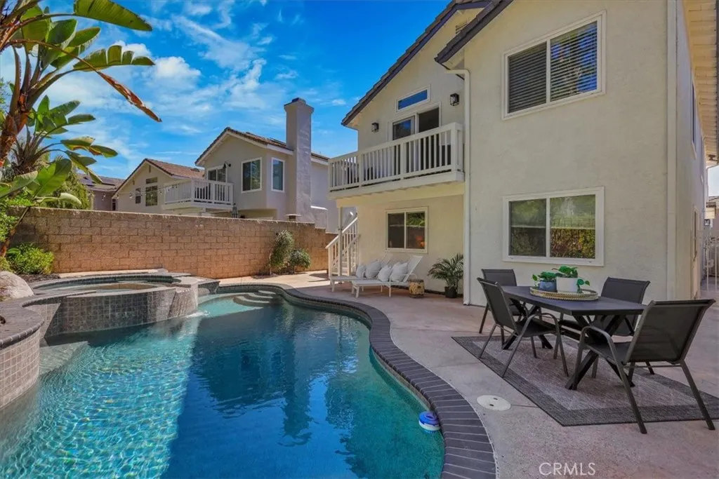 Welcome home to this beautiful 4-bedroom, 3.5-bath Sundance model pool home located in the highly desirable Wagon Wheel community. Designed with family living in mind, this thoughtfully appointed floor plan offers plenty of space for everyone to be together while also providing private retreats when needed. Downstairs, youll find three bedrooms: one with its own ensuite, another with a large and versatile private retreat, and a third perfect for guests. Upstairs, the spacious primary suite with its relaxing ensuite bath creates a private sanctuary to unwind at the end of the day. The main living area is filled with natural light and features an open-concept design that brings the whole family together. From casual weeknight dinners to holiday celebrations, the seamless flow between the kitchen, dining, and family room makes every gathering warm and inviting. The home showcases beautiful upgrades throughout, including granite counters, decorative beveled glass windows, elegant wood shutters, custom wood door casings, wood flooring, and brand-new carpet. Step outside to your backyard oasis, where a sparkling pool and spa set the stage for endless fun and relaxation. Its the perfect place to entertain, host summer barbecues, or simply make lasting memories with family and friends. Adding to its appeal, this home is energy-efficient with brand-new Tesla solar panels, helping to reduce utility costs while supporting sustainable living. Nestled in the charming Wagon Wheel community, this home offers access to parks, trails, and top-rated Capistrano Unified schools, including Wago