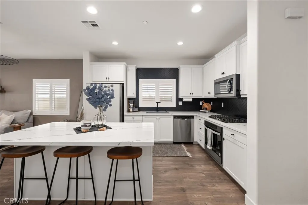 Welcome to 35354 Price St, a breathtaking 3-bedroom, 2-bathroom sanctuary in Beaumonts premier Augusta at The Fairways community. Built in 2023 and exquisitely remodeled, this 1,342 sq ft single-story home marries modern farmhouse warmth with sleek contemporary style. Imagine relaxing in your private backyard, coffee in hand, as you take in serene golf course views. Step inside to an open-concept layout that radiates charm, with rich wood-tone flooring, crisp white walls, and bold black accents creating a timeless yet trendy vibe. The remodeled kitchen steals the show: sparkling quartz countertops, top-of-the-line stainless-steel appliances, and custom shaker-style cabinetry center around an extended island thats perfect for morning pancakes or evening wine nights with friends. It flows seamlessly into the dining area and Great Room, where large windows flood the space with light, ideal for cozy family moments or lively gatherings. The primary suite is your personal retreat, boasting a dual quartz-topped vanitiy, a spacious walk-in shower, and a walk-in closet. Two more bedrooms - one with its own walk-in closet - a full bath, and a practical laundry room round out the home. Upgrades like energy-efficient LED recessed lighting, a tankless water heater for endless hot water, and Americas Smart Home Technology (video doorbell, smart thermostat, keyless entry) make life effortlessly modern. Living in The Fairways means embracing a resort lifestyle: dive into the junior Olympic pool, watch the kids play at the splash park, stay active in the fitness center, or connect with neig