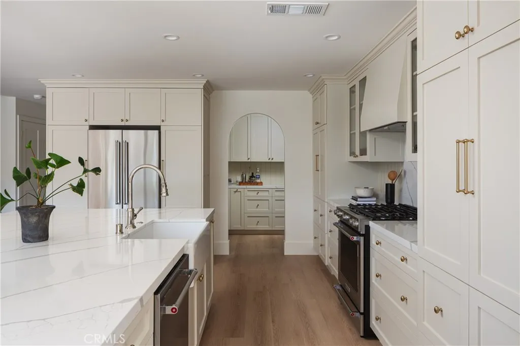 This stunning, fully renovated home sets a new benchmark for design, craftsmanship, and attention to detail. From the moment you enter through a charming Dutch door, the expanded foyer impresses with exposed wood beams and a skylight that fills the space with natural light, creating an unforgettable first impression. At the heart of the home is a chefs dream kitchen, featuring a show-stopping oversized island, fireclay farmhouse sink, premium KitchenAid appliances, a walk-in pantry, and generous floor-to-ceiling cabinetry. Ideal for entertaining, the kitchen flows seamlessly into the living area, where wall-to-wall La Cantina folding doors frame breathtaking views of the Back Bay. The living room is anchored by beautifully crafted built-in shelving and a sleek fireplace. Step outside to a private enclosed patio that overlooks a lush green gully and treetop canopy, leading into the tranquil sanctuary of the Back Baya perfect retreat for morning coffee or evening gatherings. Every detail of the renovation was thoughtfully executed, including new ducting, HVAC, a tankless water heater, fully insulated walls, integrated Nest doorbell and thermostat, and wide-plank white oak flooring throughout. Solid wood interior doors add a touch of timeless quality and elegance to every room. The guest and hall bathrooms feature designer Visual Comfort lighting, Bedrosian tile, and premium finishes. The primary suite offers a spa-like experience with Edward Martin checkerboard tile, a soaking tub, oversized shower, and McGee & Co fixtures. The attached two-car garage is finished with epoxy f