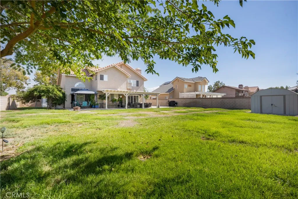 LOCATION, LOCATION, LOCATION!!! Welcome to 44273 Palo Verde St. A Spacious Two Story Home in West Lancaster!! Huge Lot!! High Ceilings!!! Many Upgrades! Newer Mohawk Laminate Flooring in Entry Way, Living Room and Formal Dining Room. This Home Features: 4 bedrooms; 3 bathrooms; Beautiful Den/Pool Room downstairs with custom recessed lighting, a Wet Bar with Wine refrigerator, Gas Fireplace and Modern Ceiling Fan. Ample kitchen w/Peninsula, Custom Chisel Cut Granite Countertops, a Farm House Sink, Tile Back Splash, Stainless Steel Appliances, Wood cabinetry, Pantry, Breakfast Area and Tile flooring; Inside Laundry Room with Cabinets and Soak Sink: Formal Dining Room; Formal Living Room; Upstairs Features: Spacious Main Bedroom with a Walk-In Closet a secondary closet, Ceiling Fan and Gas Fireplace. Main Bathroom has Dual Sinks with custom lighting & a Separate Shower/Tub. 3 Additional Bedrooms one of them includes Bonus Space possibly for multi-family living, 3 Bedrooms have Harmonics Laminate flooring, New Carpet on stairs, Hall and Large Bedroom, Nice hall Bathroom with newer vanity and Sink. Back Yards Offers: Expansive Covered Patio, Storage shed, Block Walls. Iron Gate, Gazebo, possible RV Access and a Huge Back Yard!! Upgrades completed within the last 5 years, Has Central Air/Heat and a Window Evaporative Cooler for energy efficiency. This can be Your Home!!