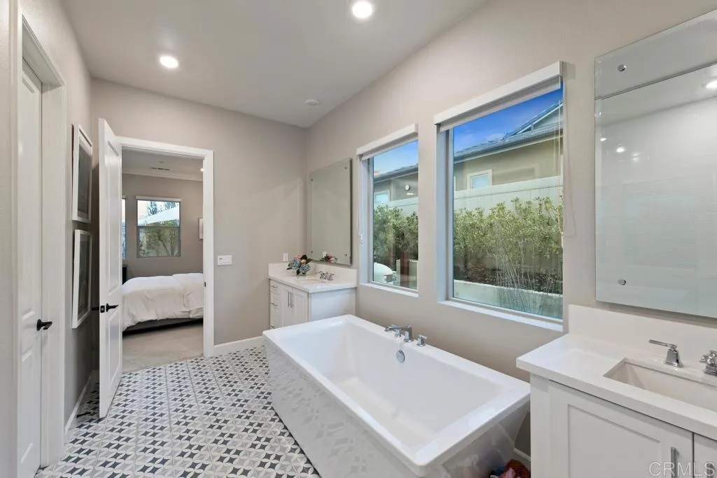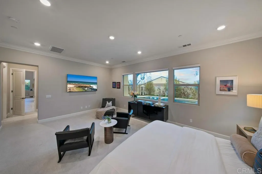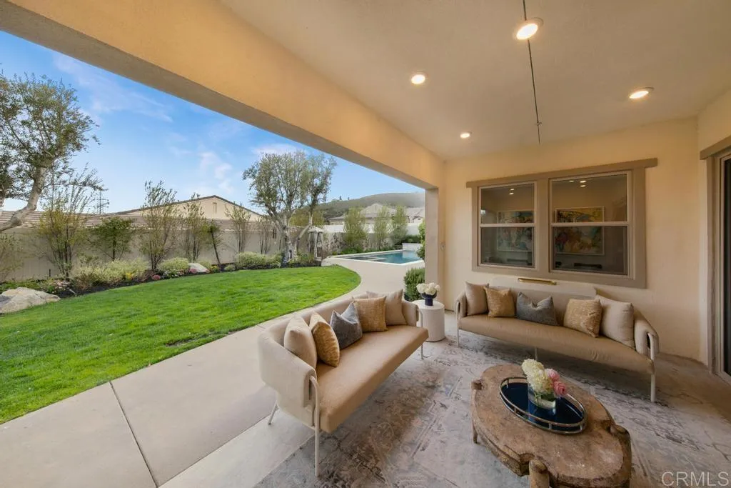 Step into a realm where curated luxury meets the serene, sun-drenched ambiance of this exquisite corner lot home in Harmony Grove Village. This residence is not just a home; it's an immersive lifestyle experience, meticulously crafted for those with discerning tastes. Over $300,000 in bespoke enhancements have transformed this property into a haven of refined elegance, where every detail resonates with sophisticated living. What sets this home apart are the stunning Spanish Olive Trees from a rare grove that anchor the landscape with timeless elegance. Five mature Manzanillo olive trees, each over 80 years old, were originally cultivated in Sonoma Valley and carefully transported into place. These majestic specimens evoke the charm of a Mediterranean estate, with sculptural trunks and a silvery canopy that catches the light beautifully, day or night. These opulent olive trees provide not just shade and serenity but also a sense of rooted history and effortless luxury rarely found in Southern California homesa true signature feature of the grounds. This exquisite home features four bedrooms and four and a half baths, including a two fully en-suite bedroom on the main floor which includes the Primary Suite, offering unparalleled convenience and privacy for guests or multi-generational living. Inside, the atmosphere shifts to one of sophisticated intimacy. The elegant library, with its custom-crafted built-in bookcase and fireplace feature wall, serves as an architectural centerpiece designed for both beauty and function. Framed by rich, deep-toned walls, the light gray millwo