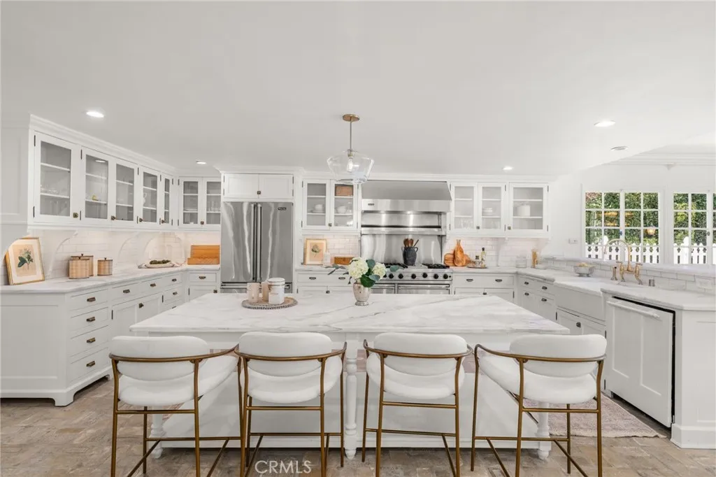 Welcome to one of the most Exquisite English Country Estates in Orange Park Acres, celebrating timeless charm, architectural elegance and historical grandeur. Connect with nature as you enter this gated sanctuary, with two gorgeous homes on 1.08 acres of lush, meticulously landscaped grounds. This one-of-a-kind estate offers the ultimate blend of luxury, privacy, and versatility ideal for multi-generational or retreat like living. The main residence is approximately 5,000 square feet, with four bedrooms, a bonus/entertainment room that also serves as an additional bedroom. Four elegant fireplaces add warmth throughout with dual-zone HVAC with two separate systems. Custom finishes, abundant natural light, and architectural details elevate every room of this home. A permitted guest suite within the main residence offers a private full bathroom, making it perfect for visitors, in-laws, or use as a private office. At the heart of it all, the gourmet kitchen featuring the finest Calcutta Gold marble island, countertops, and Viking appliances. Rich hardwood flooring, expansive windows, and French doors fill the space. The home offers an elegant dining room, family room, and a living room with a fireplace and office. In addition to the main home, the property features a fully permitted 1,200 square foot secondary guest house with it's own private entrance and french doors throughout. It is complete with high ceilings, a full kitchen with island, two full bathrooms and own private backyard. The outdoor spaces include a resort-style pool and spa, a brick-built BBQ with refrigerator,