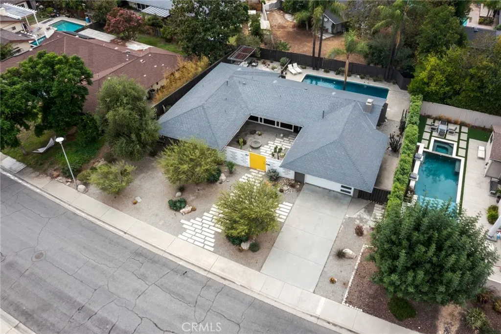 Welcome to 1863 Antioch Rd. This mid-century modern pool home in Indian Hills Estates has been tastefully updated with designer touches and modern features. The open kitchen was fully remodeled with custom cabinets and quartz counters. Walls of windows let natural light flow through the living and dining spaces. The single-level floorplan has four bedrooms and two and a half bathrooms, including a spacious primary suite. Other conveniences include a well-located laundry area, ample built-in storage, and attached two-car garage with EV charger. Enjoy fantastic curb appeal from the thoughtfully designed landscaping and distinctive yellow door, which leads into a peaceful courtyard with fountain. The large backyard features multiple zones to play and relax, including a swimming pool and a covered lounge area. The home is ideally set on a quiet cul de sac and steps away from Joat Park and Claremont High School. Come see it before it goes!