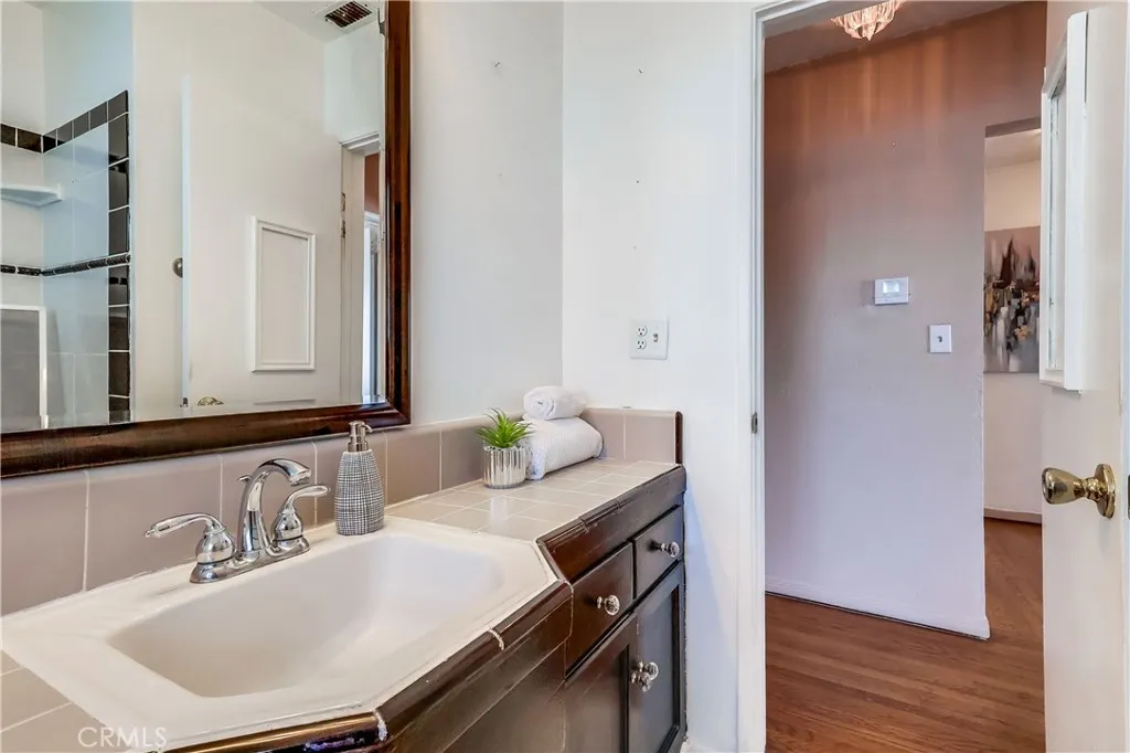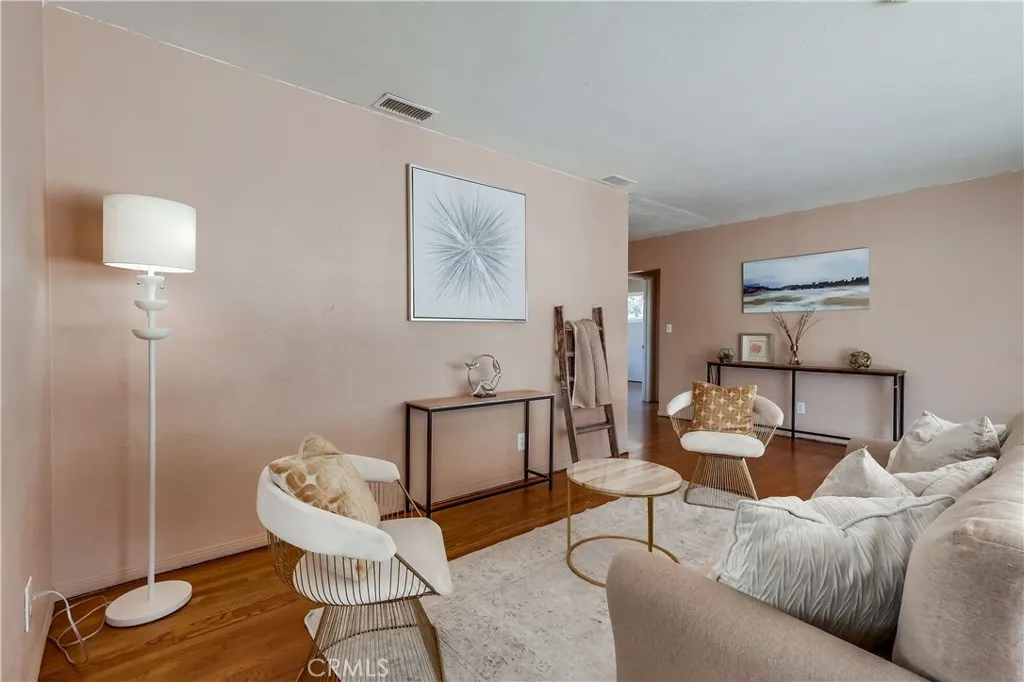 This charming 3-bedroom, 1 3/4-bath home offers an ideal floor plan with seamless flow and modern potential. As you step inside, you are greeted by an expansive and open living room, where natural light pours in through large windows that frame a beautiful view of the lush, green backyard. The inviting space is adorned with rich hardwood floors that flow throughout the home, adding warmth and elegance. This home features a thoughtfully designed bedroom layout to meet a variety of needs. One of the bedrooms functions as a perfect work-from-home (WFH) space, complete with its own attached 3/4 bathroom for added privacy and convenience. This flexible space could also serve as a private retreat for a teenager or a guest suite. The other two bedrooms are generously sized and well-appointed, each offering ample closet space to keep everything organized. Practical features include inside laundry, offering the ultimate convenience. Outside, the oversized, detached garage presents a fantastic opportunity for an Accessory Dwelling Unit (ADU) conversion. This is ideal for generating rental income, providing a private guest house, or creating a multi-generational living space. The spacious backyard and ADU potential make this property a truly special find in a desirable Whittier location.