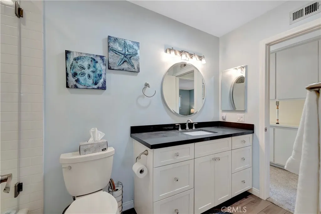 Artists Cottage in Westminster Village Tastefully Updated Two-Story Home! Welcome to this beautifully updated two-story residence in the highly sought-after Westminster Village community, truly embodying the charm of an Artists Cottage. Every detail has been thoughtfully curated, from the inviting front patio to the serene, remodeled backyard retreat. Inside, the home features a bright and open floor plan ideal for entertaining. The spacious living room boasts a romantic fireplace, custom wall paint, scraped ceilings, recessed lighting, and elegant laminate and tile flooring throughout and 1/2 bath first level. The kitchen is a chefs dream, highlighted by a large bay window over the sink that overlooks the tranquil patio, and sliding French doors that open to a private outdoor sitting area. Upstairs, youll find two bedrooms and remodeled 1 full bath with Solar Tube, including an oversized primary suite with a walk-in closet, wall-to-wall mirrored wardrobe, and a built-in organizer. Ceiling fans throughout the home add both style and comfort, while dual-pane windows and plantation shutters enhance energy efficiency and privacy. Additional features include a two-car garage with built-in cabinetry and the refreshing coastal breeze that flows through the home. HOA dues cover fire and earthquake insurance, roof and exterior maintenance, landscaping, and more. Westminster Village offers resort-style amenities including four sparkling pools, tennis courts, three playgrounds, greenbelts, meandering streams, and scenic pathways. The main clubhouse features a large recreation room w