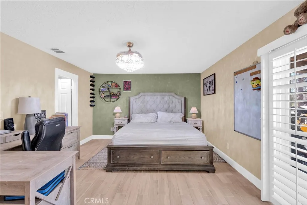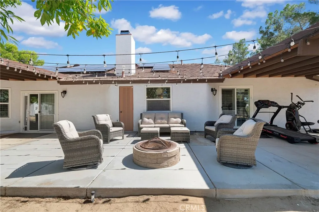 The home you have been looking for is finally here! This beautifully maintained Apple Valley residence sits on a spacious, nearly three quarter acre lot with a set back front yard and a circular driveway that creates instant curb appeal. Masonry style block fencing with integrated lighting adds elegance and nighttime visibility. The fully fenced, level backyard provides ample space for a pool, outdoor living, and entertaining, with convenient rear alley access that is perfect for RVs, trailers, or easy guest entry, adding both convenience and flexibility. Inside, the home features modern wood look tile flooring, recessed lighting, smart home features, and elegant fandeliers throughout. The bathrooms have been thoughtfully updated with stylish finishes that create a serene, spa like ambiance. The split floor plan includes an attached garage for easy access, a bonus enclosed sunroom with both interior and backyard access, and an additional multi use bonus area room with interior and private entry that can serve as a home office, guest suite, or fourth bedroom. Designed for entertaining and comfortable living, the home flows seamlessly to an extra long, two part backyard covered patio that opens at the center to a cozy firepit area, ideal for relaxing evenings under the stars. The cemented, well lit space is perfect for gatherings of any size and provides a private, resort style setting for family and friends. The tranquil backyard also features a beautifully converted private shed that has been transformed into a glamorous, fully functional retreat with a kitchenette, laundry