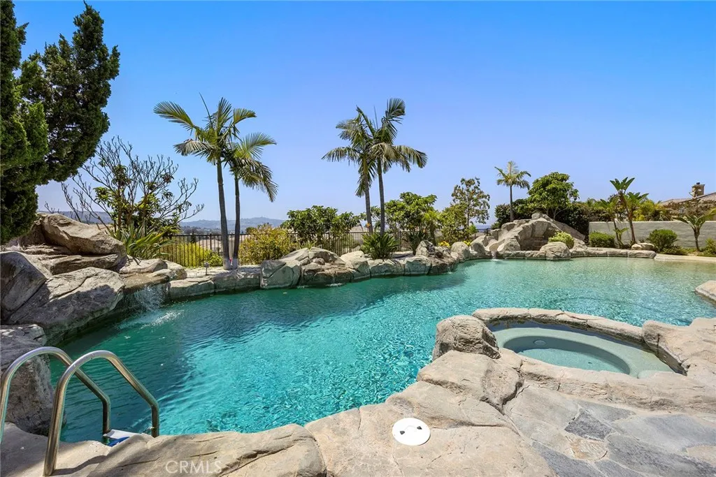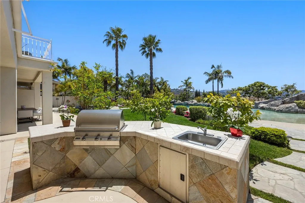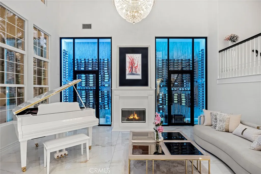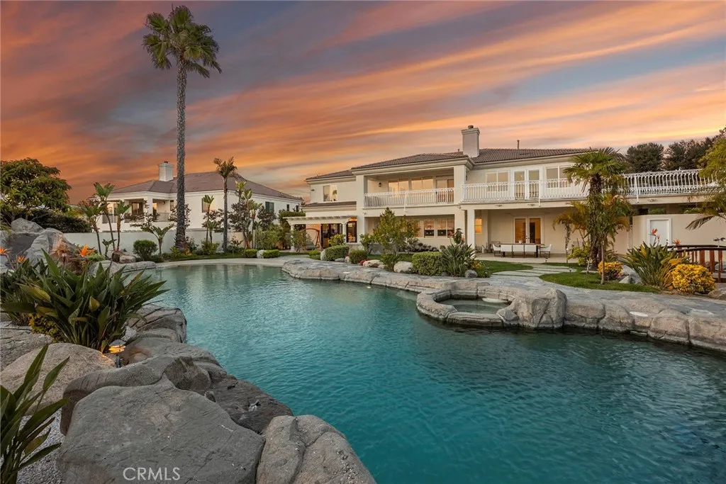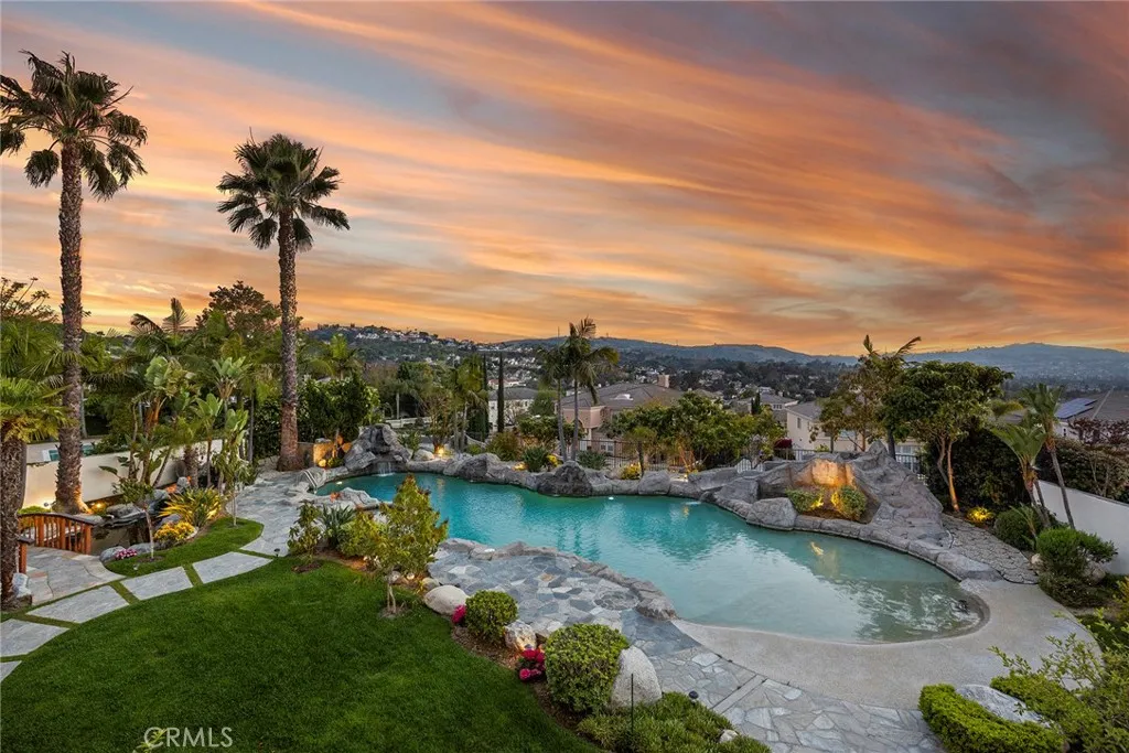 This ultimate masterpiece estate, remodeled and updated in 2023, enjoys over $900K in upgrades; it spans 5,618 sq ft of perfection, and is nestled amidst the serene landscape of the exclusive guard-gated community of Hill Top (with only 48 homes). Located on over half an acre, with sweeping city light views, this grand semi-custom estate offers an unparalleled fusion of opulence and tranquility. Step through the custom grand front doors into a world of refined elegance and natural light. The entry foyer welcomes you with its soaring ceilings and sets the tone for the lavishness that awaits. Completely upgraded throughout with a gourmet kitchen that is a culinary masterpiece, equipped with top-of-the-line Thermadore stainless steel appliances, 3 built in columns: 36 refrigerator, 24 wine and 30 freezer, large center island that doubles as a breakfast bar, and is highlighted with a $7K kitchen faucet. There is also an additional ice maker, and beverage fridge in the eating area. Off the kitchen is a wall of stackable doors that open to the breathtaking resort style backyard, complete with a huge 5 star hotel size lagoon style beachfront entry pool, Koi pond with romantic viewing bridge, entertainer's BBQ, and exotic fruit trees throughout. Perfect for indoor and outdoor living or entertaining. Flawless, and move-in ready with new flooring throughout the entire home, 4 exquisite chandeliers, 2 enclosed and lighted walls of floating wine bottles (one on each side of the living room fireplace), family room with custom fireplace, huge formal dining room, and 5 exquisite bedrooms;