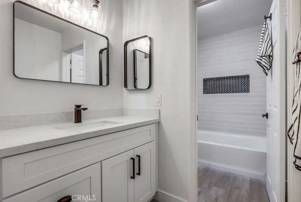 Modern Coastal Living Just Minutes from the Beach Fully Remodeled 2-Bedroom, 2.5 bath at Pointe Surfside in Huntington Beach! Welcome to your next-level coastal lifestyle. Just 1.5 miles from PCH, this boldly reimagined 2-bed, 2.5-bath first-floor condo in the gated community of Pointe Surfside, delivers sleek design, smart upgrades, and all the indoor-outdoor flow you wantplus resort-style amenities to match. Upgrades throughout from the floors to the fixtures so you can skip the projects and head straight to the beach. Youll love the stylish, fully opened-up kitchen with white shaker cabinets, quartz counters, black hardware, new dishwasher, slide-in gas range + modern range hood. The breakfast bar is perfect for casual mornings or relax with friends. Open-concept living + dining area with fireplace and seamless flow for entertaining. Two spacious bedrooms each with private ensuite baths, plus a chic powder room for guests. Totally updated bathrooms with new tubs, designer tile, stylish mirrors, modern vanities, and updated fixtures. High-end waterproof laminate flooring throughout. Modern custom barn doors on bedroom closets, fresh paint, smooth ceilings, modern window treatments, including roll-up shades on sliders. Private patio with new concreteperfect for weekend hangs, your morning coffee, or creating a lush container garden paradise for plant lovers. There is an in-unit laundry room with hookups, the unit comes with one covered parking space with storage shelf. First-floor location for easy access and enhanced convenience. This unit gives Resort-Style Feel with E