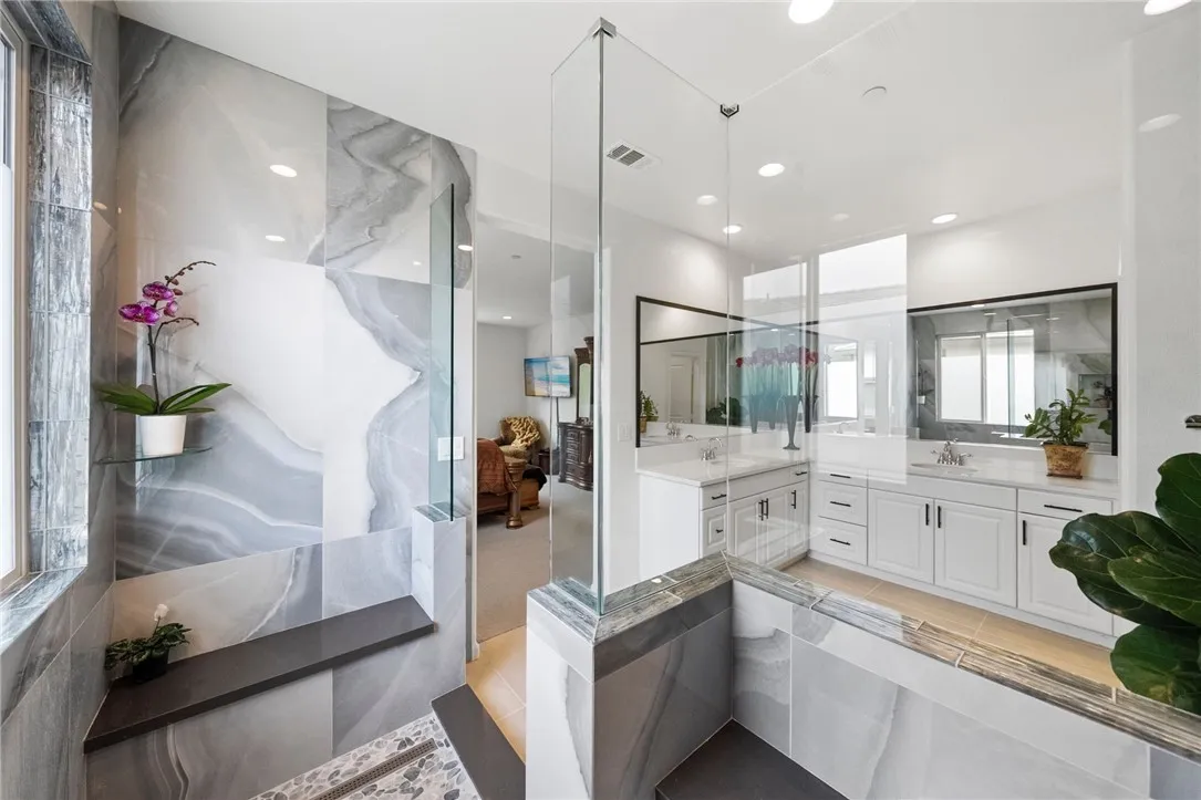 Spacious & Upgraded Home with Pickleball Court in Southwest Wildomar! Step inside this beautifully designed 5-bedroom, 3-bathroom home, where the first floor offers both comfort and functionality. The open-concept living area is an entertainers dream, featuring a built-in 75" TV, custom shelving, a striking 72 linear fireplace with a black granite hearth, and gorgeous plank flooring throughout. The formal dining room provides an elegant space for hosting dinners and gatherings. The chefs kitchen boasts a custom 8'4" granite raised eating bar, a stylish backsplash, an upgraded sink and faucet, under-cabinet lighting, a walk-in pantry, and a walk-through butlers pantryperfect for additional storage and serving. A wine cooler with a black absolute granite countertop adds a touch of sophistication. Also on the first floor is a bedroom and a full bathroom, ideal for guests or multi-generational living. Upstairs, youll find a versatile loft, and four additional bedrooms, including the luxurious master suite. The master retreat features a large walk-in shower with a dry area and a spacious custom-organized closet. Upgraded carpeting and a custom-designed interior staircase with wrought iron railing add to the home's elegant design. Outside, embrace California living in the beautifully landscaped backyard, maintained by a fully automated irrigation system. Enjoy a serene rose garden, citrus trees, a charming gazebo, and a pickleball/sports court for endless outdoor fun. RV access is prepped for full hookups, and the 3-car garage is equipped with a new sink and additional cabinets f