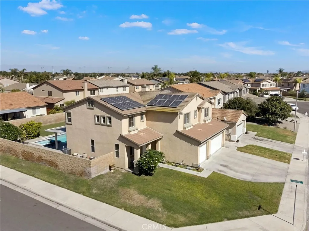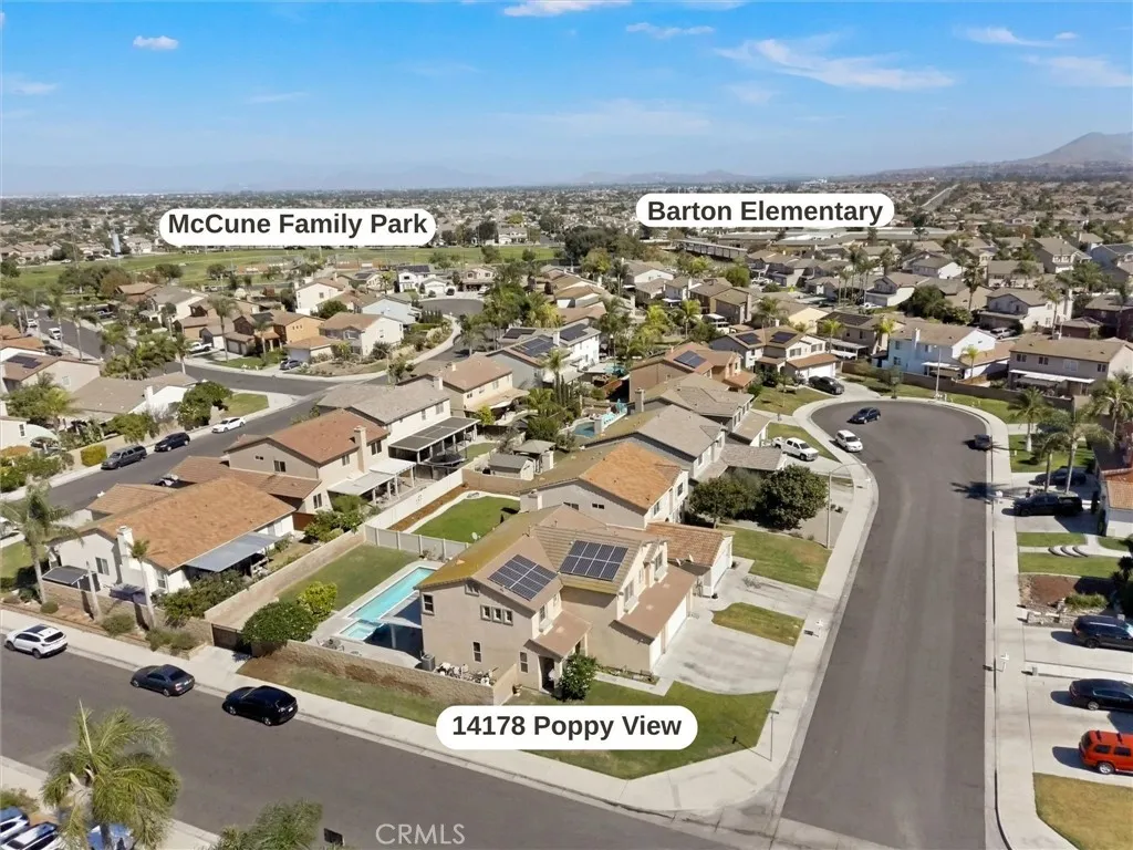 Welcome to the home youve been waiting for! This stunning 2,600 sq. ft. cul-de-sac pool home offers 4 bedrooms, 3 full bathrooms, and RV parking. Step inside to a bright formal living and dining area that leads to a beautifully remodeled island kitchen featuring quartz countertops and an open layout to the family room with a cozy fireplace and built-ins. The main level also includes a bedroom and full bathroom, perfect for guests. Upstairs, youll find two spacious bedrooms, a full bath with dual sinks, a convenient laundry room, a versatile loft, and a luxurious primary suite complete with dual walk-in closets. The backyard is an entertainers dream with a sparkling pool and spa, a full aluminum patio cover, a grassy play area, and RV parking with gated access. Fully paid off solar system. Ideally located just around the corner from McCune Family Park and Barton Elementary School.