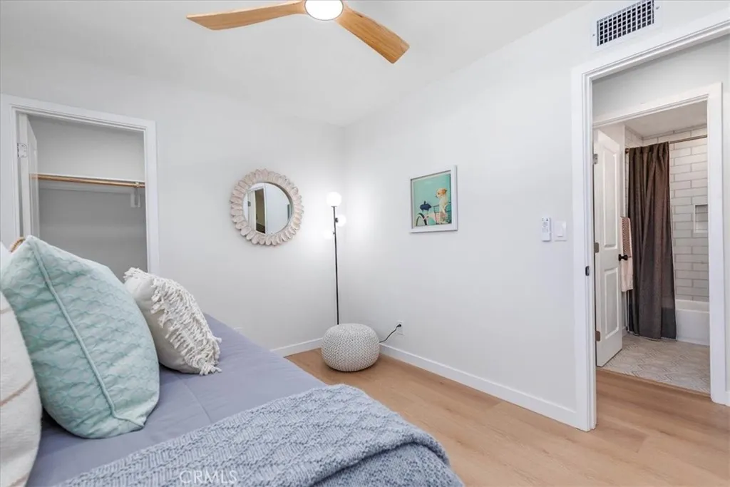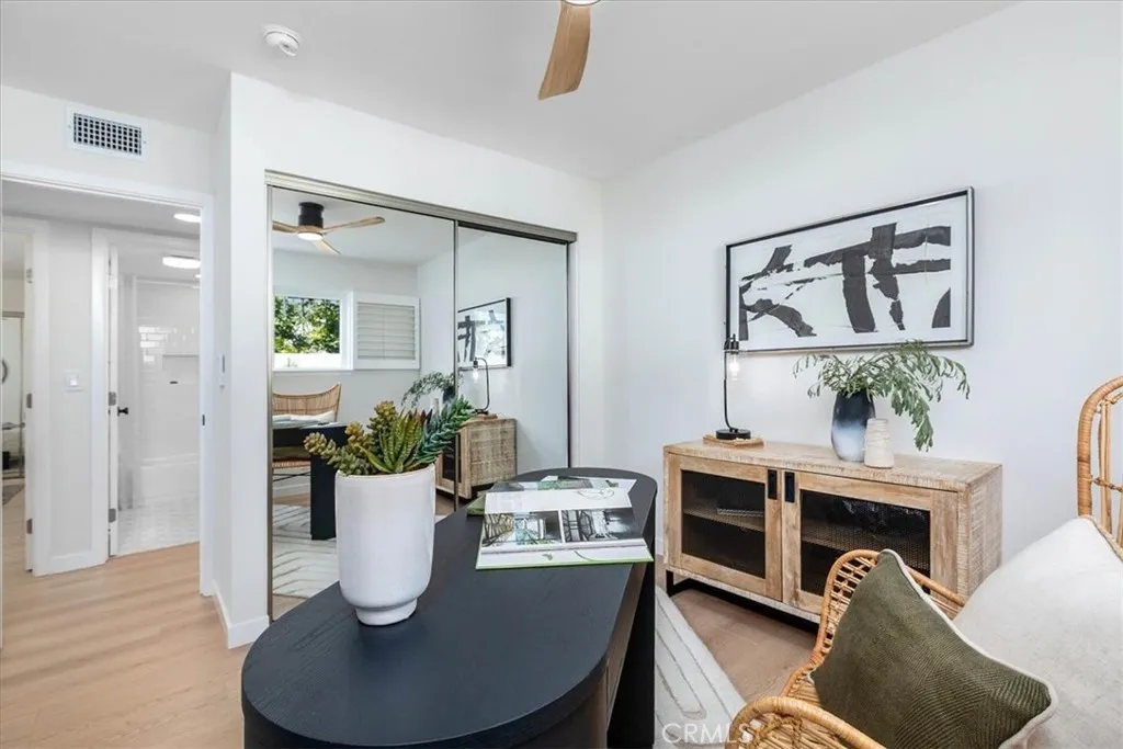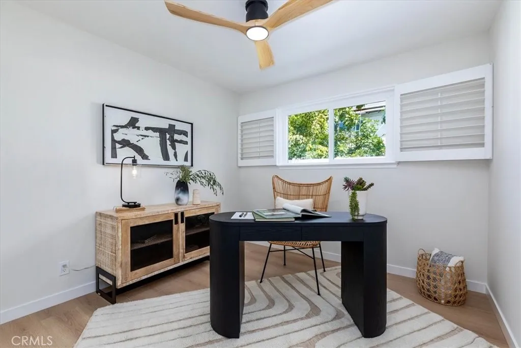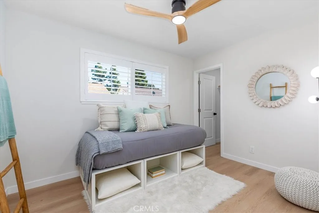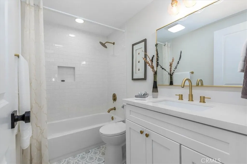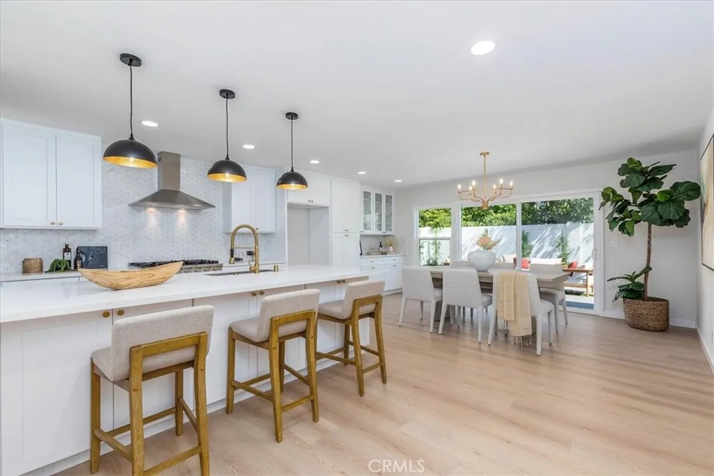 Welcome to a beautifully renovated 5-bedroom, 3-bathroom two-story home in highly desirable Cerritos. Upon entering, youre greeted by a grand living room with soaring high ceilings and a cozy fireplace, creating an open and inviting atmosphere. The main floor also features a spacious primary suite with a large en-suite bathroom and walk-in closet, plus a second bedroom. The remodeled kitchen boasts a large island, abundant cabinets for ample storage, quartz countertops, and vinyl wood flooring that continues into all bedrooms. The rest of the home features recessed lighting, and custom shutter windows throughout most areas. All bedrooms are generously sized, providing comfort and flexibility for family, guests, or a home office. Upstairs includes three bedrooms and a large loftperfect for a home office, library, or playroom. The patio provides an ideal space for outdoor entertaining. Located within the award-winning ABC Unified School District, just minutes away from Cerritos Mall, parks, shopping, restaurants, groceries, and major freeways, this home combines comfort, style, and convenience in one of Cerritos most sought-after neighborhoods. This property offers the perfect blend of modern living and Southern California lifestyle in the heart of Cerritos.