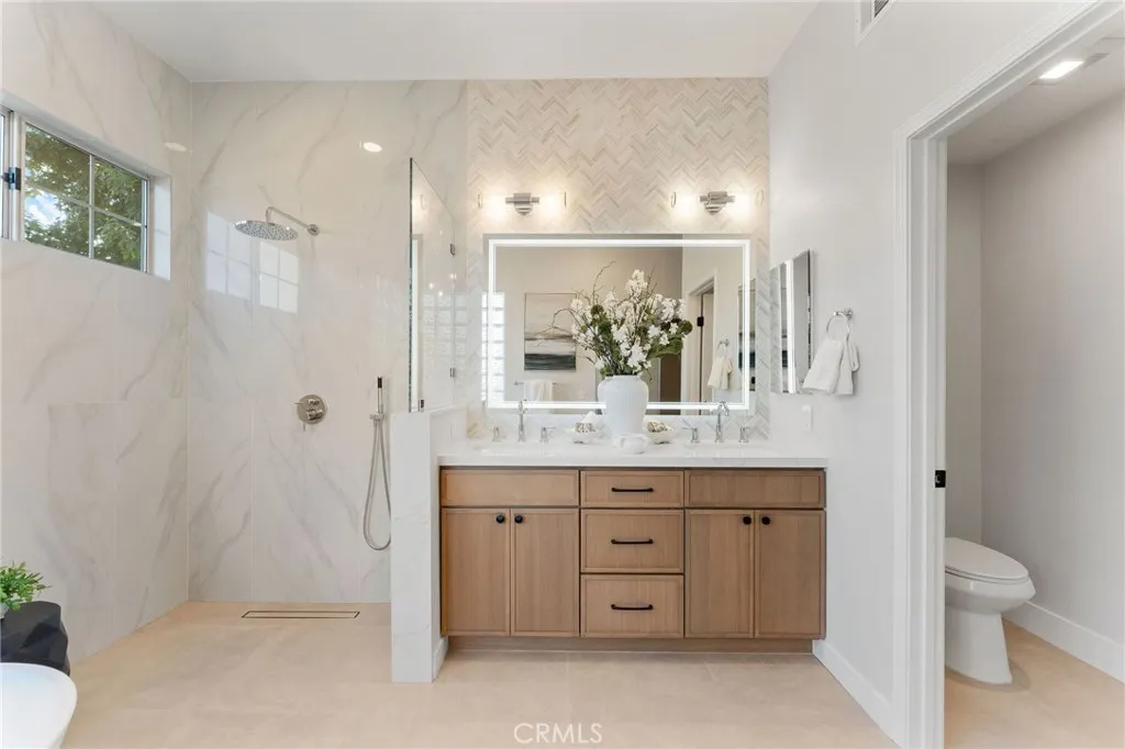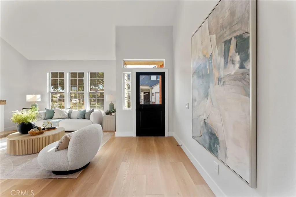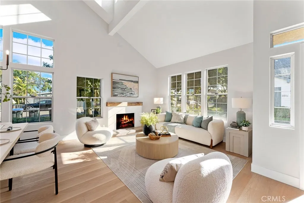 This stunning, newly remodeled, Bay Harbor Estates home is ready just in time for the holidays! Nestled in the heart of Eastside Costa Mesa, this gorgeous 4-bedroom, 3-bath residence offers over 2500 square feet of modern elegance with everyday comfort. Step through the new custom glass Dutch door into an inviting formal living and dining room space showcasing cathedral ceilings, a striking chandelier, a beautiful fireplace, tons of windows, including charming dormer windows that add architectural character as well as natural light. Quite the welcome for you and your guests! As well, the open-concept great room seamlessly connects the kitchen, family room, and dining area, and is highlighted by a cozy fireplace and sliding doors that open to the lush backyard. The designer kitchen showcases a large island with bar seating, quartz countertops, custom soft-close cabinetry, with pull-out pantry drawers, deep pot drawers, and a full GE stainless steel appliance suite. The downstairs bedroom and full bath provide a flexible space to be used as a guest retreat or home office. While upstairs, the primary suite offers double-door entry, vaulted ceilings, a generous walk-in closet, and a luxurious spa-inspired ensuite with a stand alone soaking tub, an open shower with a rain shower head & hand held shower, a dual vanity, and an anti fog LED mirror. Also upstairs are two additional bedrooms, one being oversized with its own deep walk-in closet. The upstairs hall bath also has a dual vanity, a new tub, with glass enclosure and LED anti-fog mirror. The home has new designer flooring,