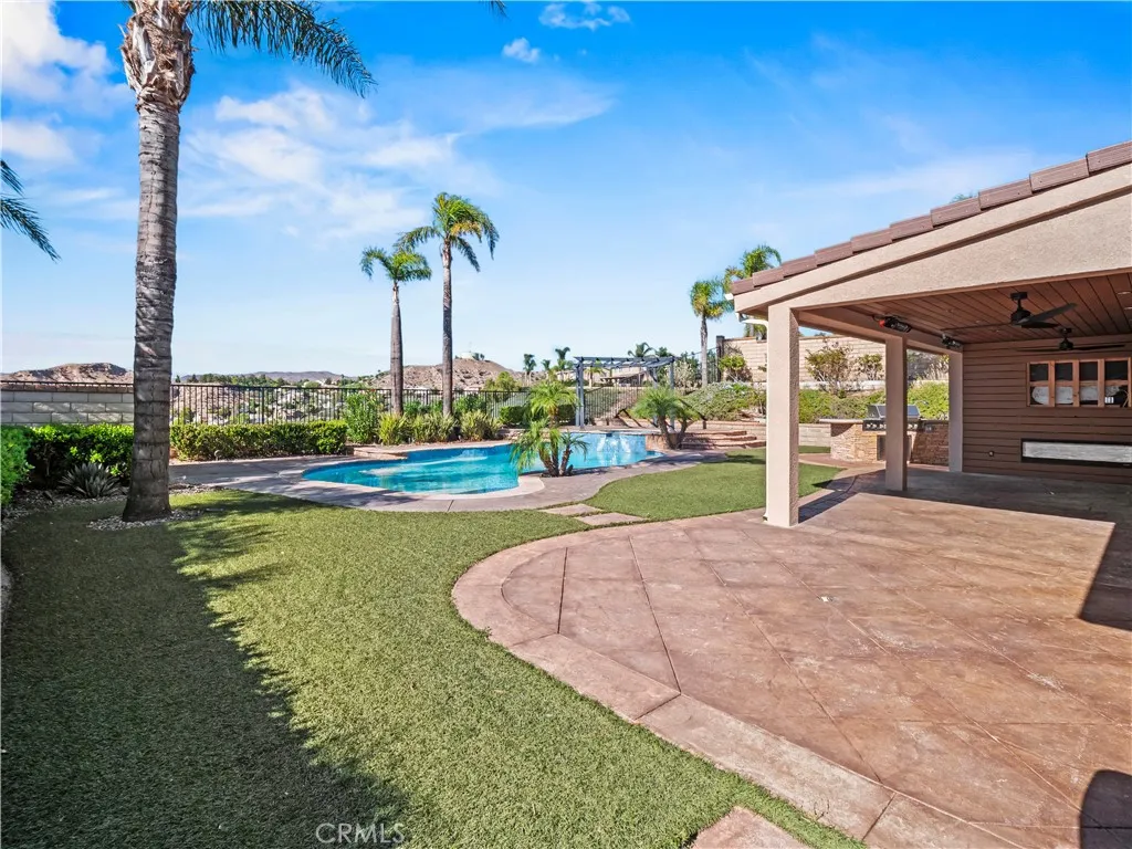 Picture-Perfect Recently Remodeled Stone Crest Home with Breathtaking Views, 4-beds, 3-baths with multiple lofts, a full bedroom and bathroom downstairs, a 3-car garage, and true RV parking! Ideal for guests or multi-generational living, the downstairs suite provides privacy and convenience. The formal living and dining room feature soaring ceilings, picture windows, and abundant natural light. The beautifully updated eat-in kitchen showcases freshly upgraded cabinetry, brand-new quartz countertops, a dramatic full backsplash, and a striking waterfall island. Stainless steel appliances and a large walk-in pantry with built-in shelving complete the spaceall with stunning views. The kitchen opens to the cozy family room with a fireplace, perfect for relaxing evenings. Upstairs, youll find an office space with built-ins and a spacious loft retreat with multiple views in all directions. The private and HUGE primary suite features serene views, retreat area, a luxurious ensuite bath with a soaking tub, glass-enclosed shower, dual sinks, and a large walk-in closet with custom organizers. Two additional bedrooms and a renovated full bath complete the upper level. Designer upgrades include fresh interior paint on walls, doors, and trim, all new matching electrical fixtures, upgraded flooring and lighting, crown molding, and dual newer HVAC systems. Step outside to your entertainers paradisean incredible backyard with a re-plastered pool and spa featuring a Baja shelf, outdoor shower, gazebo, built-in BBQ with sink and beverage fridge, large turf area, and recently customized covere