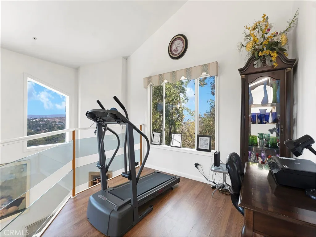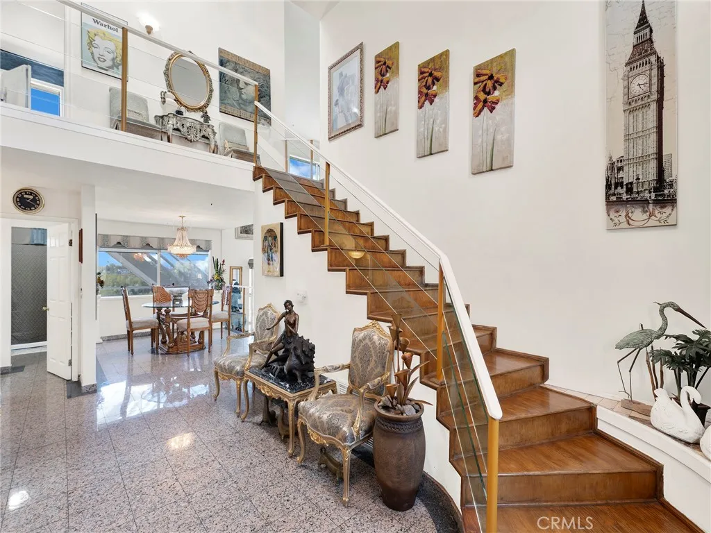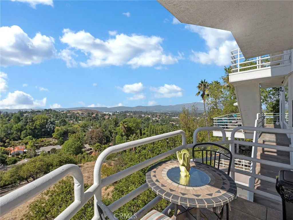 Absolute must-see! Elevated, exceptional Vista de Oro estate with breathtaking 180 panoramic views from virtually every vantage point. Located South of the Boulevard in Woodland Hills most desirable enclave. Enjoy an idyllic drive past pride-of-ownership estates leading to nearly 5,000 sq ft of living space on an expansive 22,500+ sq ft mostly flat lot. This 5-bedroom, 5-bath residence offers unique expansion potential for multi-generational living, resort-style entertaining, a luxury family compound, or the future development of multiple ADUs. A double-door entry opens to a dramatic two-story foyer with a glass-framed staircase. The main level features a cozy reception area, a spacious living room with fireplace and walls of glass framing unobstructed valley and city-light views, an oversized formal dining room with wet bar, and a chefs kitchen with generous granite counters, stainless steel appliances, and its own scenic balcony. Multiple decks and balconies flow seamlessly for both grand entertaining and everyday living. A symphony of windows, skylights, and glass doors bathes the interiors in natural light. Upstairs, the private retreat showcases a large primary suite with soaring ceilings, dual balconies, fireplace, walk-in closet, and spa-style bath. Four additional bedrooms with high ceilings and four baths offer flexibility for family or guests. The open loft area can serve as a home office. On the lower levels, discover a full-size family/game room with wet bar, a theater room, ample storage, and a separate suite with its own entranceideal for extended family, stud