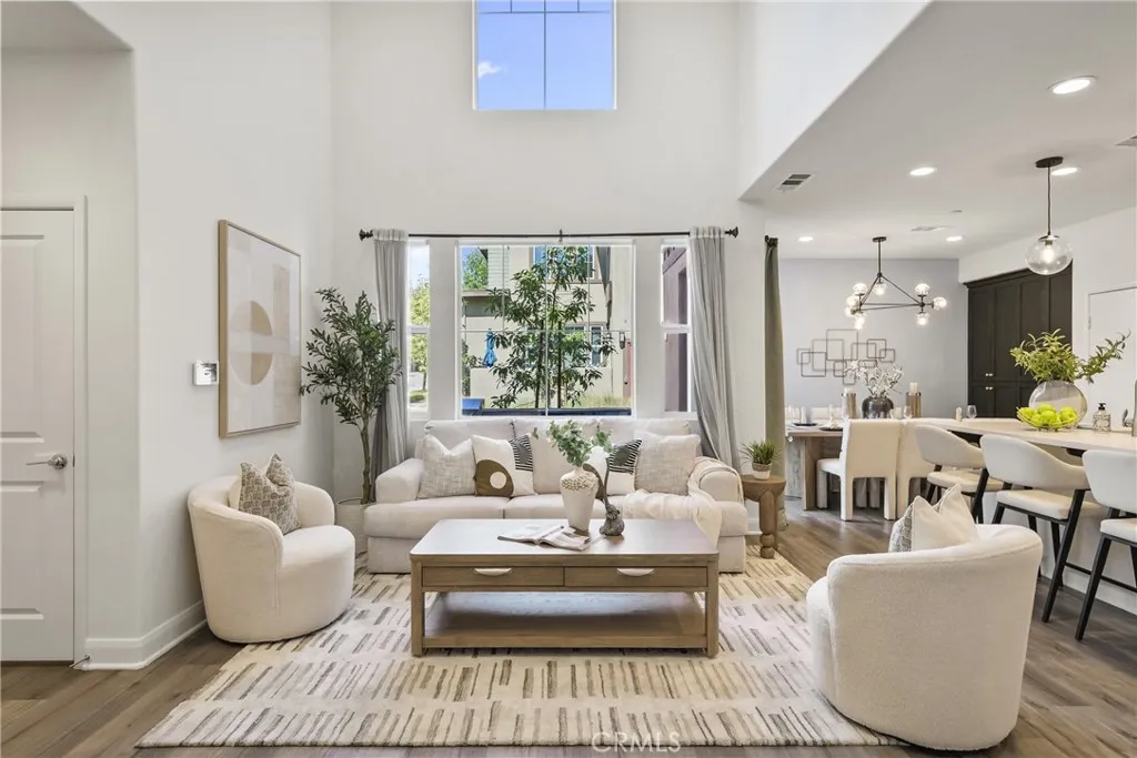 Welcome to this elegant three-story contemporary home in the desirable Day Creek Square community of Rancho Cucamonga. Just steps from Day Creek Marketplace and minutes to the 210 freeway, this residence combines style and convenience. The bright living room with soaring ceilings flows into a gourmet kitchen featuring a large center island, stainless steel appliances, and designer finishes. A private patio is perfect for BBQs, while the upper levels include a spacious loft, luxurious primary suite with walk-in closet and spa bath, and a third-floor balcony showcasing stunning San Gabriel Mountain views. Additional highlights include a two-car garage with Tesla charger and access to resort-style community amenities with pool and BBQ area. With top schools and Victoria Gardens nearby, this home offers modern living at its finest.