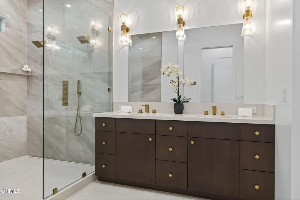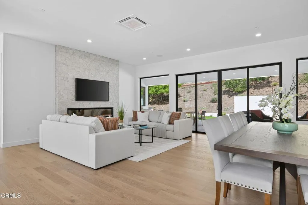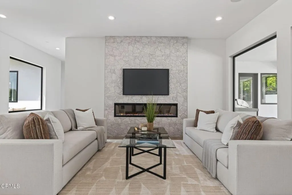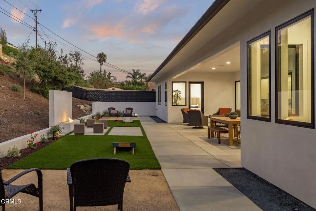 Welcome to Ondulando! A rare opportunity to own a brand-new construction home in one of Ventura's most sought-after neighborhoods. This modern single story residence is crafted with unparalleled attention to detail, thoughtful design, and high-end finishes. Inside you are greeted with an open concept floor plan perfect for entertaining and featuring elegant white oak engineered hardwood floors throughout. The chef's kitchen showcases top of the line appliances, a striking 9-foot center island, and a seamless flow into the spacious living room with 74' WiFi-enabled color changing LED fireplace adding to the inviting ambience of the home. This 4-bedroom, 4-bathroom masterpiece redefines luxury living with its split wing layout featuring two primary suites with incredible bathrooms with modern finishes, and each with private access to the covered patio. The extra spacious laundry room with ample cabinet space provides additional storage along with the two entry closets and hallway linen closet. Every detail was designed with efficiency and comfort in mind: individually zoned mini-split heating and cooling, a fully integrated solar system pre-wired for backup battery, EV charging readiness, and Halo 5 whole house water filtration system. Smart home upgrades include Ring doorbell, Sonos sound system with iPad control, and more! Spacious two car garage complete with epoxy finish. Step outside to your own private outdoor retreat featuring multiple sitting and dining areas, a fully equipped outdoor kitchen, fire pit, and tranquil fountain--the perfect setting for gathering year-rou