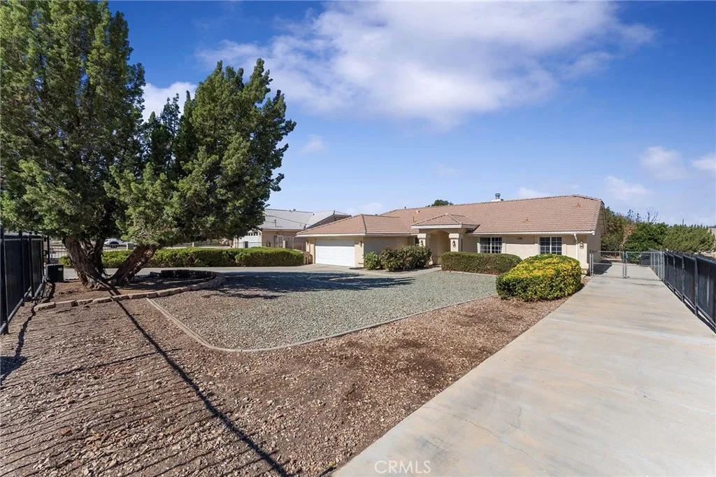 Beautiful Single-Level Custom Home with Dual Gated Driveways in a Desirable Hesperia Neighborhood! This stunning, lovingly maintained home features 3 bedrooms, 2 bathrooms, and a versatile office/bonus room that can easily serve as a fourth bedroom. Step through the front door and into an open-concept living space that seamlessly connects the living room, dining area, and kitchen perfect for entertaining. The main living area showcases high ceilings, a cozy fireplace, and sliding doors that lead to the expansive covered patio and backyard. The spacious primary suite is thoughtfully positioned on its own wing for privacy and includes a massive walk-in closet and ensuite bath. The two additional bedrooms are generously sized and located on the opposite side of the home, ideal for guests or family. Additional highlights include: Brand-new flooring throughout Stainless steel appliances Central A/C and heat Large laundry room with storage Fully fenced yard with two gated driveways plenty of space for RV and boat parking Three storage sheds and mature fruit trees Expansive covered patio, perfect for BBQs and outdoor gatherings. Septic certification is complete, and with only two previous owners, this beautiful home is ready for lucky owner number three! Located in a quiet, well-kept neighborhood close to shopping, schools, and the freeway this property truly checks all the boxes for comfortable, California high-desert living.