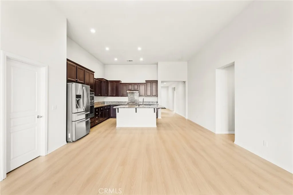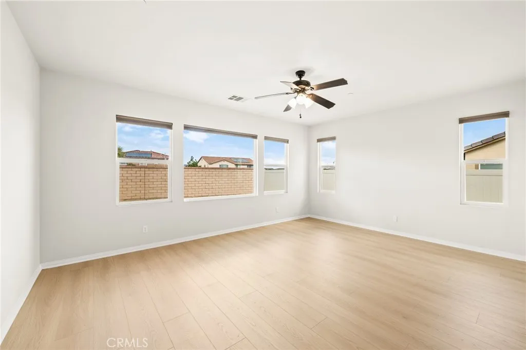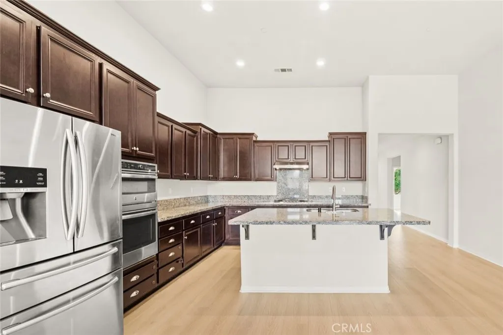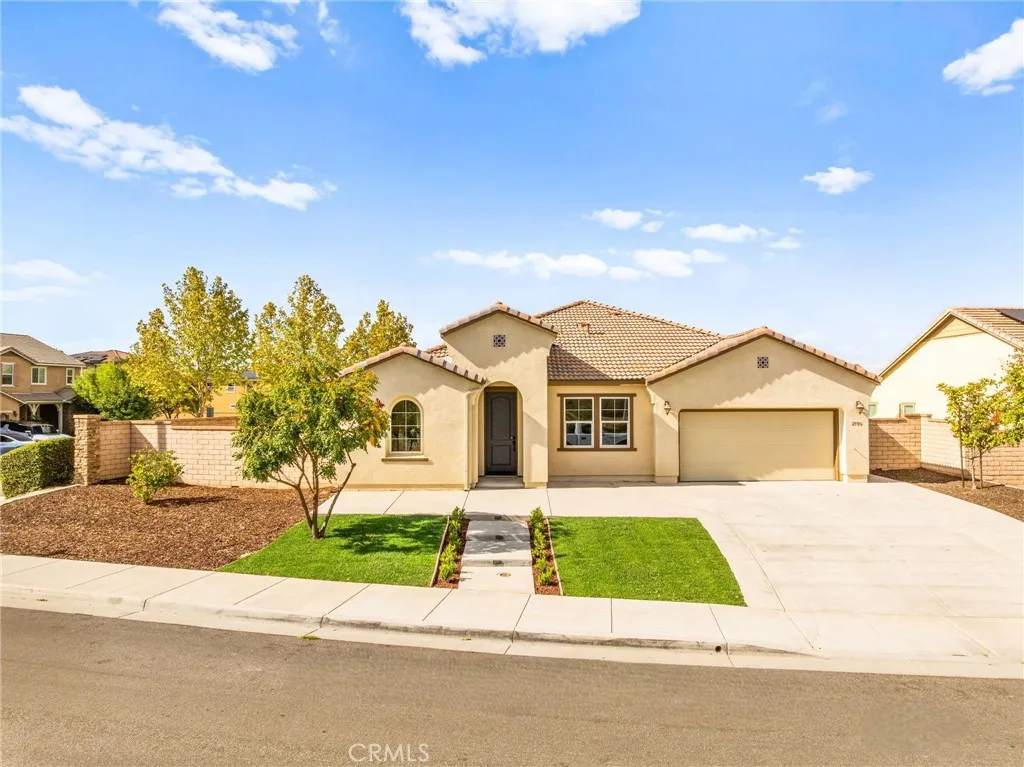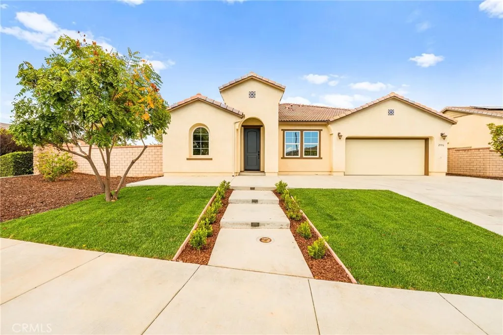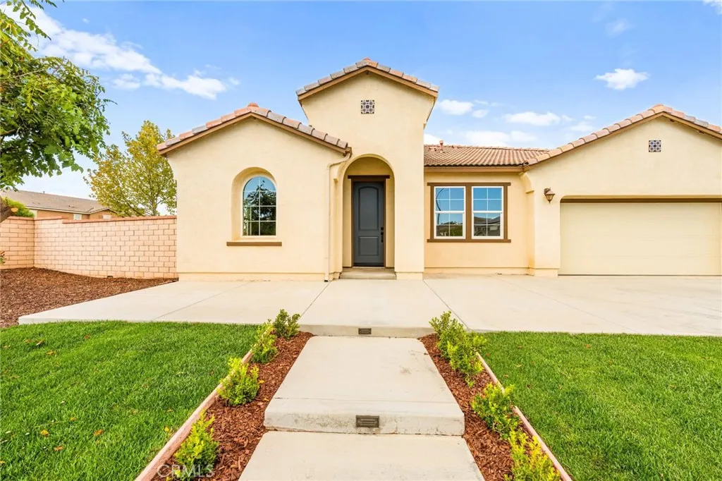 Incredible single story Menifee family home with Next Gen Suite located in the highly desirable community of Audie Murphy. 2,504 sf 4 bedroom 3 bathroom Spanish style California ranch with a 3 car tadem garage and freshly landscaped front yard with great curb appeal to set the stage for the "like-new" home. This model is one of the most sought after models in Audie Murphy, with the open floor plan, guest mother in-law suite, great room and grand kitchen offering 12' ceilings, finished in fresh paint, and brand new neutral laminate flooring throughout. The large kitchen has an abundance of cabinetry, granite counters, large walk-in pantry, large center island, dark cherry cabinets, and stainless appliances. The island offers central bar seating adjacent to the dining area, and shares the main space with the large and open living room laid out in true great-room form. The guest suite has its own kitchenette, living room/bonus area, and full bath on its own wing of the home. The oversized primary bedroom is privately to the rear corner with lots of natural lighting and connected primary bathroom, offering a walk-in shower, soaker tub, dual sink vanity, and not one but 2 separate walk-in closets. To the rear of the home, the comfortable and shaded rear yard has a California room style patio cover with plenty of space and a larger side yard great for a dog run or other usable space. One option for this area could be to separate the guest suite access from the main home, making it it's own ADU and create its own yard space as an ADU WITH ITS OWN YARD. Located walking distance fro