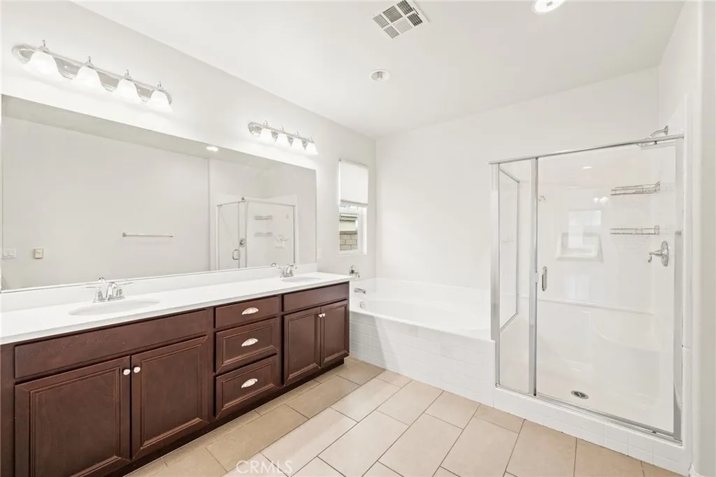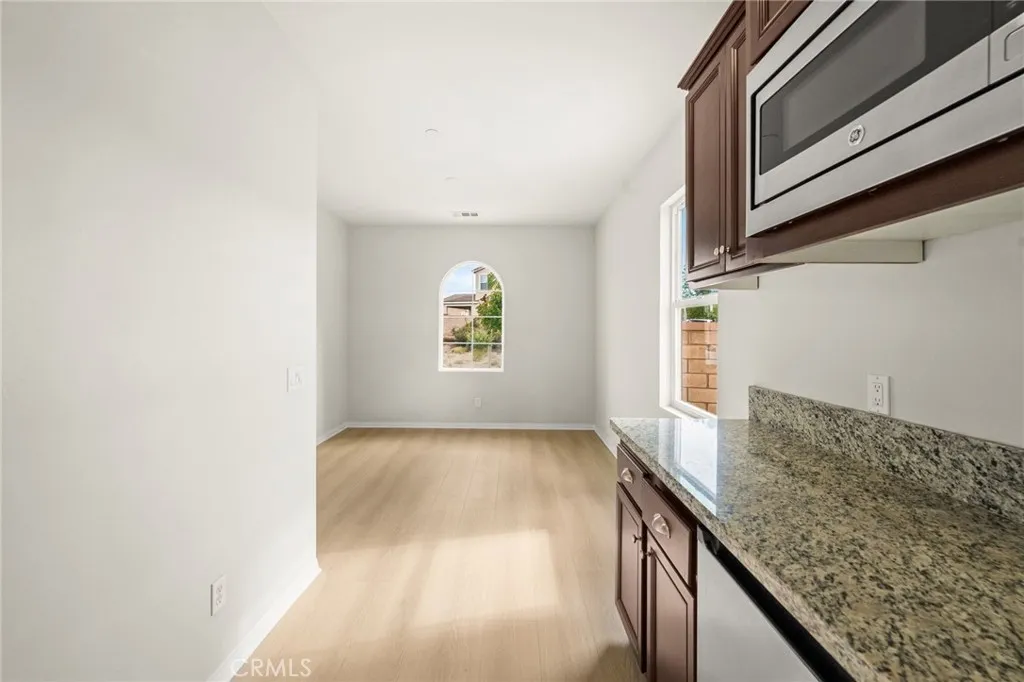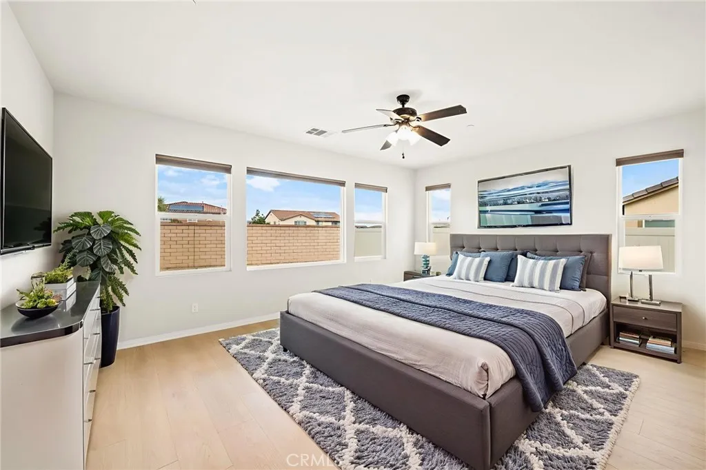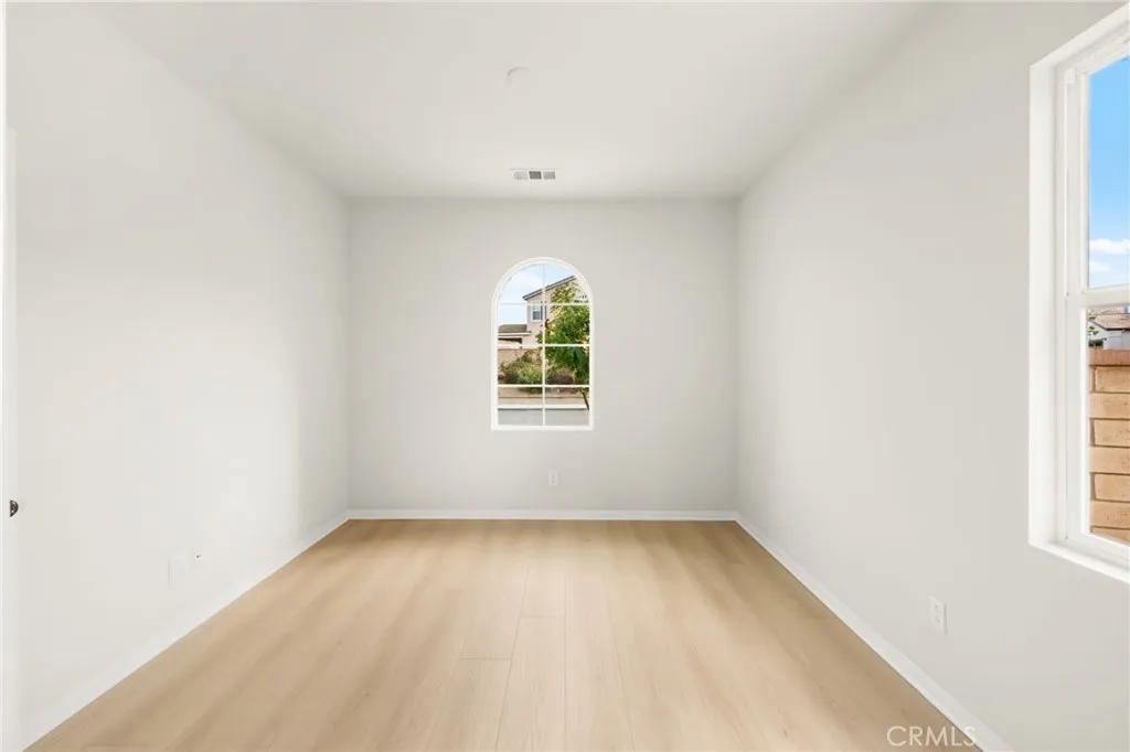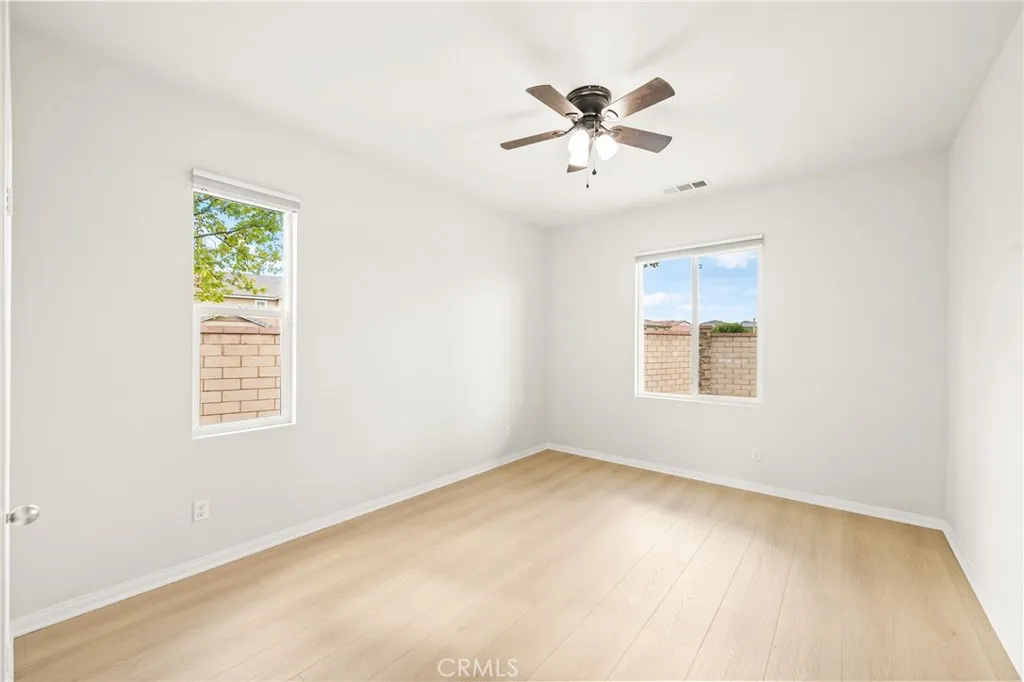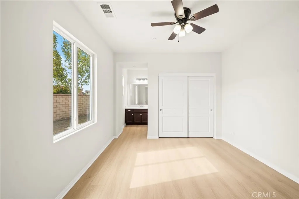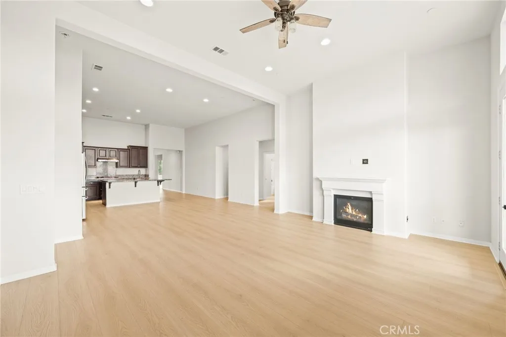 Incredible single story Menifee family home with Next Gen Suite located in the highly desirable community of Audie Murphy. 2,504 sf 4 bedroom 3 bathroom Spanish style California ranch with a 3 car tadem garage and freshly landscaped front yard with great curb appeal to set the stage for the "like-new" home. This model is one of the most sought after models in Audie Murphy, with the open floor plan, guest mother in-law suite, great room and grand kitchen offering 12' ceilings, finished in fresh paint, and brand new neutral laminate flooring throughout. The large kitchen has an abundance of cabinetry, granite counters, large walk-in pantry, large center island, dark cherry cabinets, and stainless appliances. The island offers central bar seating adjacent to the dining area, and shares the main space with the large and open living room laid out in true great-room form. The guest suite has its own kitchenette, living room/bonus area, and full bath on its own wing of the home. The oversized primary bedroom is privately to the rear corner with lots of natural lighting and connected primary bathroom, offering a walk-in shower, soaker tub, dual sink vanity, and not one but 2 separate walk-in closets. To the rear of the home, the comfortable and shaded rear yard has a California room style patio cover with plenty of space and a larger side yard great for a dog run or other usable space. One option for this area could be to separate the guest suite access from the main home, making it it's own ADU and create its own yard space as an ADU WITH ITS OWN YARD. Located walking distance fro
