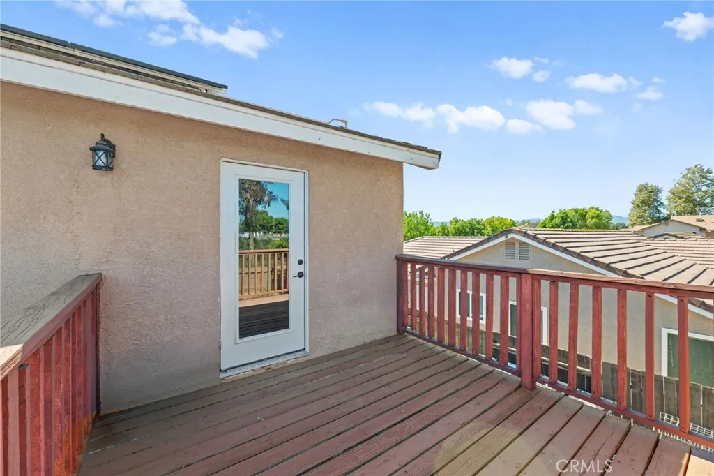 Beautifully upgraded 3-bedroom, 2.5-bathroom home located in the desirable California Oaks community of Murrieta. This two-story residence features approximately 1,509 sq ft of living space on a spacious 6,970 sq ft lot. Interior upgrades include new vinyl plank flooring throughout, updated lighting and plumbing fixtures, and freshly painted interiors. The remodeled kitchen is equipped with stainless steel appliances, a 6-burner gas range, reverse osmosis water filtration system, and a newer refrigerator that conveys. Upstairs you'll find all three bedrooms, including the primary suite with dual sinks, a walk-in closet, and a private balcony overlooking the backyard. The large backyard is fully fenced and includes a covered patio, storage shed, and ample space for a future pool or ADU. The home also features a newer garage door, central HVAC, and double-pane windows plus a Tesla EV charging system. Washer, dryer, and refrigerator are included. Buyer to assume solar lease. No HOA, No Mello-Roos, and low property taxes. Conveniently located near top-rated schools, shopping, dining, and freeway access.