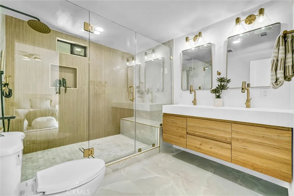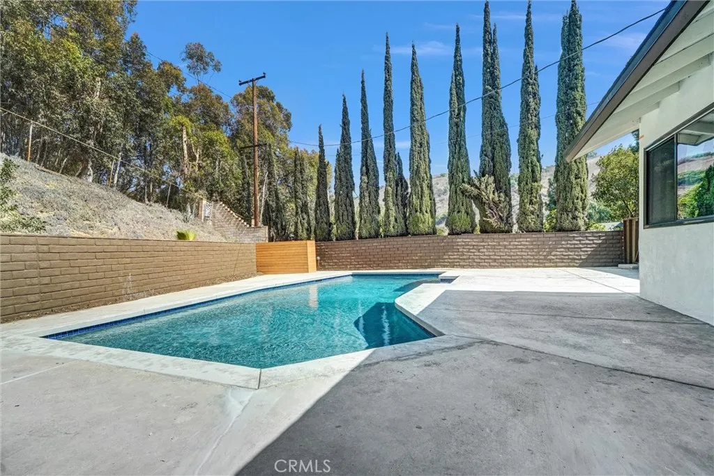 Welcome to this stunning fully remodeled 4-bedroom, 3-bath pool home located in Whittiers highly sought-after and secluded Forest neighborhood. This move-in ready home offers modern comfort and style throughout, featuring brand-new vinyl flooring, recessed lighting, and an open, airy floor plan. The chefs kitchen is equipped with quartz countertops, custom cabinetry, stainless steel appliances, a 5-burner oven, and a dishwasher perfect for entertaining or family gatherings. Enjoy year-round comfort with a brand-new A/C and HVAC system. The home also includes convenient in-house washer and dryer hookups. Each bathroom has been tastefully updated with designer finishes, and the spacious primary suite offers direct access to the backyard retreat. Step outside to your private oasis featuring a sparkling remodeled pool, new decking, and mature trees providing shade and privacy. A rare 3-car garage adds ample parking and storage. Ideally located near Uptown Whittier, shops, dining, and scenic trails this is a true Whittier gem offering resort-style living in a peaceful setting.