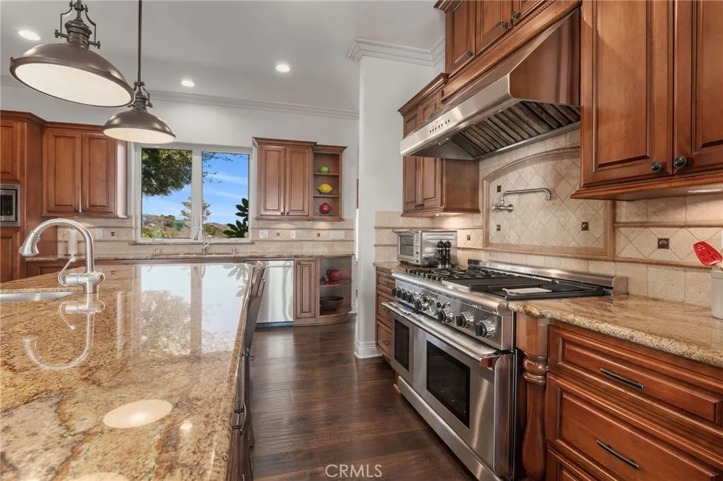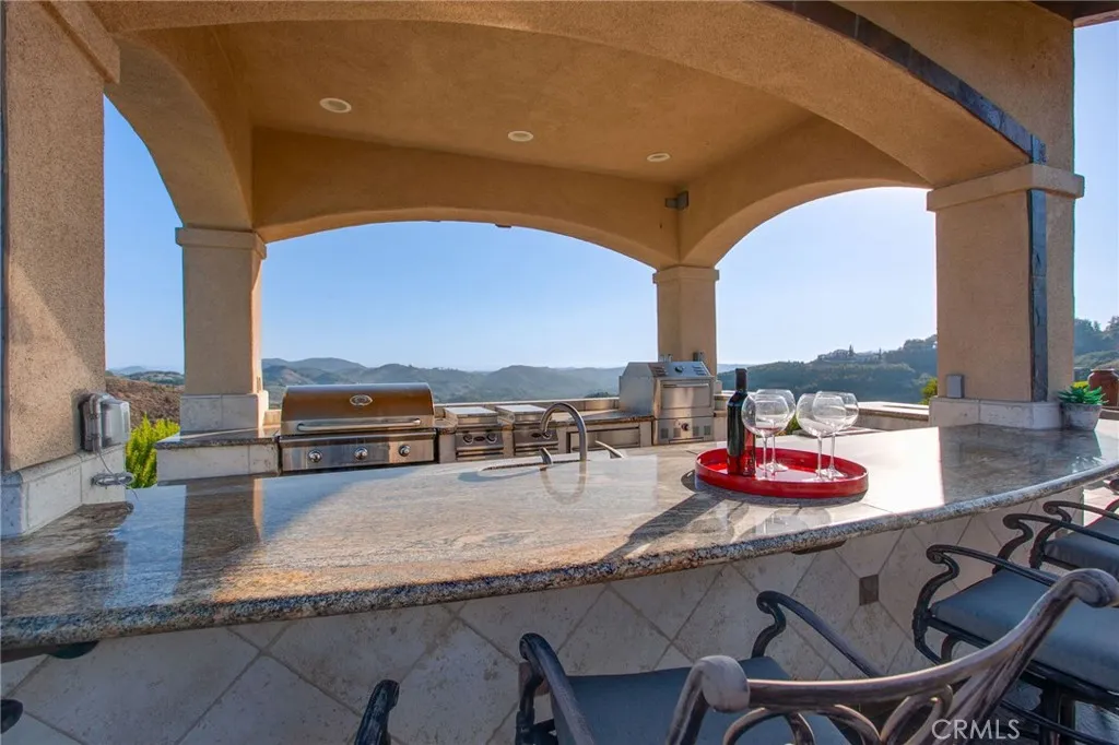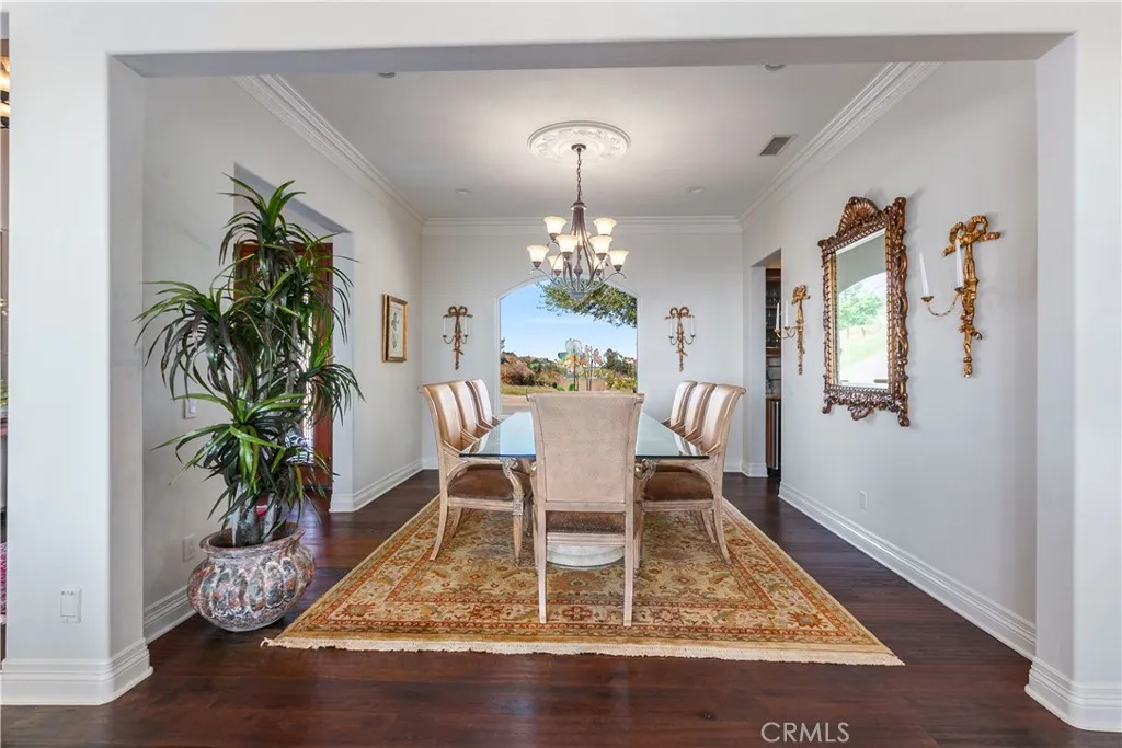 Breathtaking Panoramic Picturesque Views of Surrounding Hills and Valleys, Tranquility and Privacy. Elegant and Timeless De Luz Residence Impeccably Maintained and Beautifully Curated. Located Just Minutes from Historic Old Town Temecula (EST. 1859) and Temecula Wine Country. Stunning Drive Through Del Luz Roads with Majestic Oak Trees and Orchards, Adding Charm and Almost Magical Sense. On a Clear Day You Can Catch a Glimpse of Ocean View before heading Down Large Private Circular Driveway, and if you look left, during the Winter and Spring You Might see the Snow of San Bernardino National Forest. Impressive and Inviting Curb Appeal. Welcoming Front Porch, Lead Glass Double Door and Cathedral Ceiling Entry. Living Room with Curved Wall Enhancing Stunning Views. Gleaming Oil Rubbed Oak Flooring Throughout, Open Floor Plan Flooded with Natural Light. Formal Dining Room Adjacent to Gourmet Kitchen that Includes Oversized Center Island, Butler's Pantry, Wine Cellar, Walk-In Pantry and Spacious Breakfast Nook. Kitchen Opens to Incredible Family Room with Remarkable Beams, Fireplace and Two Sets of French Doors Leading to Covered Patio. The Primary Suite Includes Fireplace, Two Oversized Walk-In Closets and Large Retreat/Library that can be easily turned into a Fifth Bedroom, Nursery or Gym. Adjacent to the Primary Suite is also Spacious Office with Two Built-In Desks. The Left Wing of this Extraordinary Home Comprises Three En-Suite Bedrooms, All Offering Truly Magnificent Views. Resort Style Backyard Includes Several Patios, Swimming Pool, Spa, BBQ Island, Horseshoe Pit, Mega