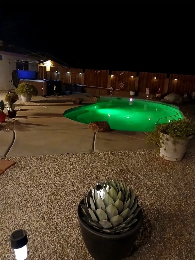 Move in ready~ Turnkey, immaculate home! DID I SAY THIS HOME HAS 2 MASTERS AND A Beautiful POOL Apple Valley Home on One Acre! 2 MASTER BEDROOMS! PAID SOLAR! Water softener, SO MUCH MORE! ? This stunning 4-bedroom, 3-bath home features two master suites with a jacuzzi tub, a remodeled kitchen, and NEW vinyl flooring. Enjoy a re-plastered and retiled swimming pool with warranty, new AC and heating system with warranty, and a paid-off solar system for energy savings. Freshly painted inside and out, the property sits on a fully fenced acre with two front gates and boasts breathtaking High Desert mountain views. Rainsoft water softener throughout the whole property.