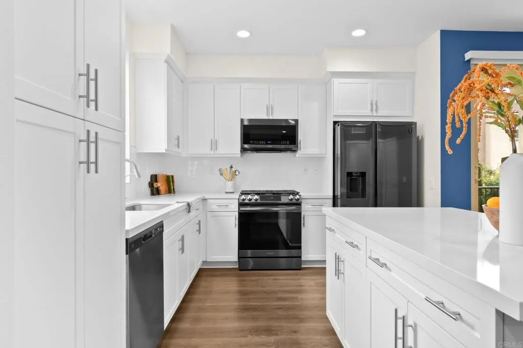 Welcome to modern living in the heart of Santee! Built in 2021, this beautifully maintained 3-bedroom, 3-bath townhouse is located in the highly sought-after Riverview communityknown for its contemporary design and unbeatable location. Step inside to discover an open-concept floor plan with high ceilings, stylish finishes, and an abundance of natural light. The spacious kitchen boasts sleek cabinetry, quartz countertops, black stainless steel appliances, and a large island perfect for entertaining. Enjoy the comfort of three generously sized bedrooms, including a private primary suite with a walk-in closet and dual-sink vanity. Additional highlights include a private balcony, in-unit laundry, attached 2-car garage, and energy-efficient features throughout. Situated in a walkable neighborhood, youre just steps from shopping, dining, parks, and all that Santee has to offer. With easy access to freeways and public transit, this location makes commuting a breeze. Dont miss your chance to own a turnkey home in one of Santees premier communities!