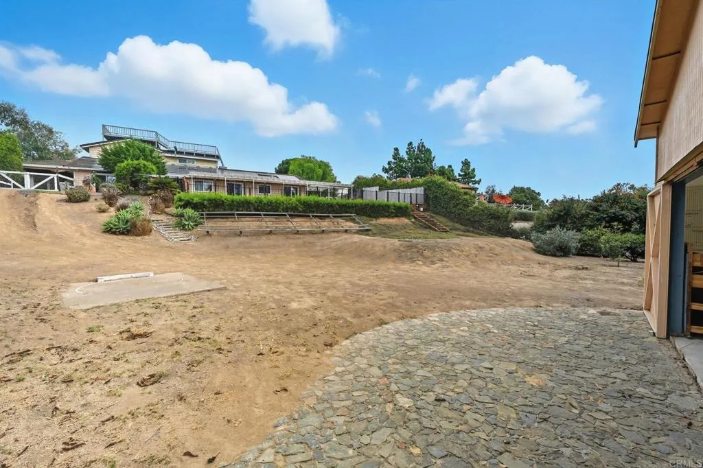 This home has it all! Charming 4 bedroom + office 3 bath 2963 square foot home on 1.09 acres located on a quiet cul de sac in the heart of Olivenhain. The possibilities are endless. Great entertaining home with a sparkling pool, spa, large deck overlooking the lower portion of the lot with a beautiful country setting includes a large barn / workshop, fruit orchard, horseshoe pit, and plenty of room to garden. Large primary bedroom & bath located on the first level with private patio. Chefs kitchen with huge center island, oversized pantry, double oven, and granite counters. Two secondary bedrooms upstairs, along with a large room which was used as an office but could also be game room/kids area. Gently sloping front yard with an easy turf lawn offering greenery all year long. There is an attached 2 car garage and an additional adjoining covered carport for all your parking needs. Enjoy this great rural location yet only minutes to town and shopping, restaurants, easy freeway access and the Beach. This property offers something for every member of the family especially those interested in equestrian, trails, and hiking.