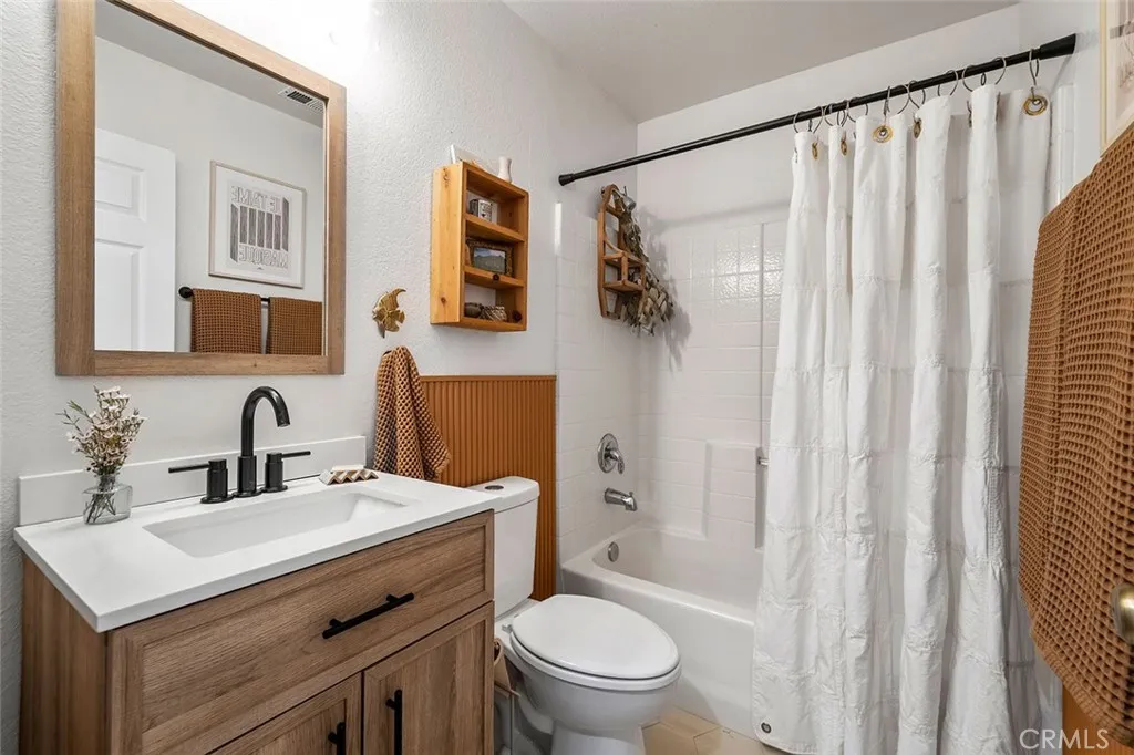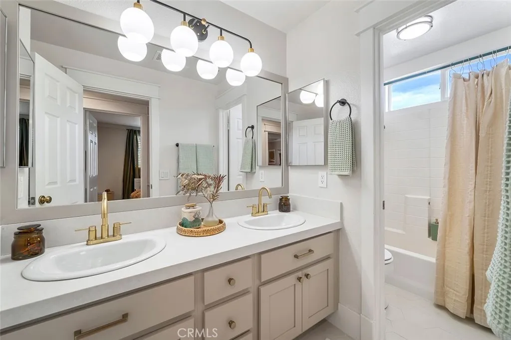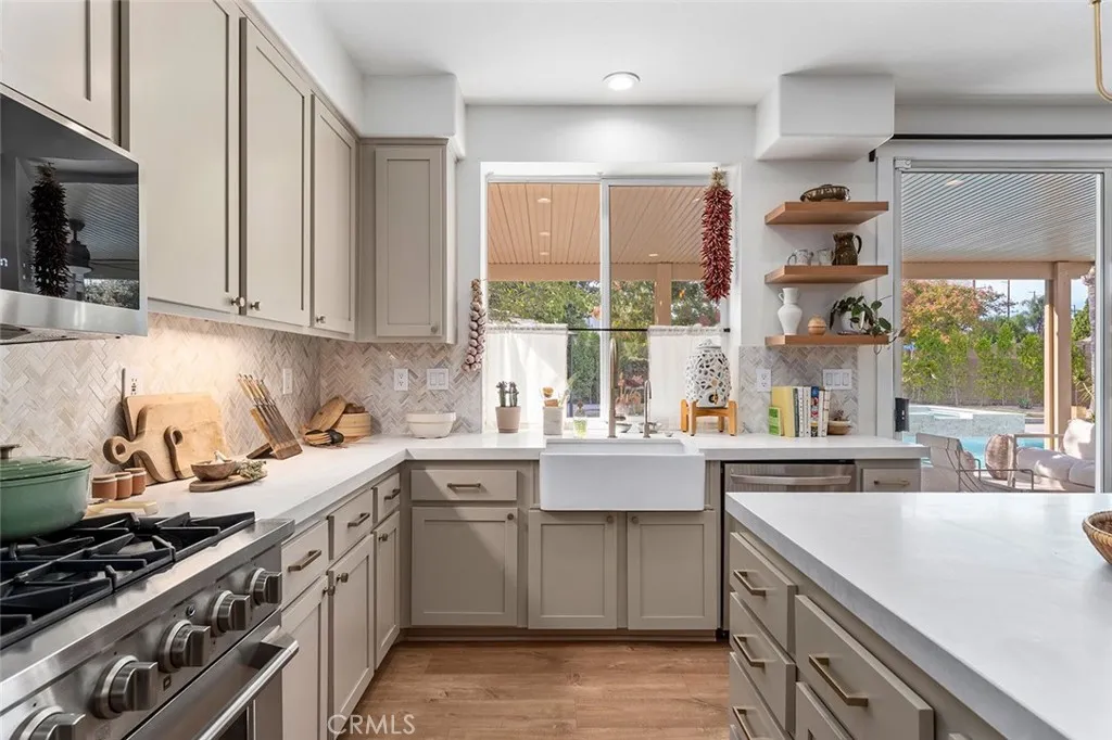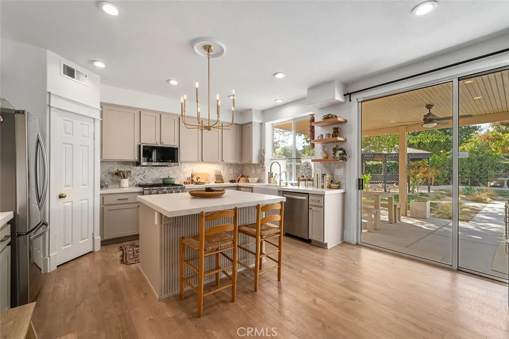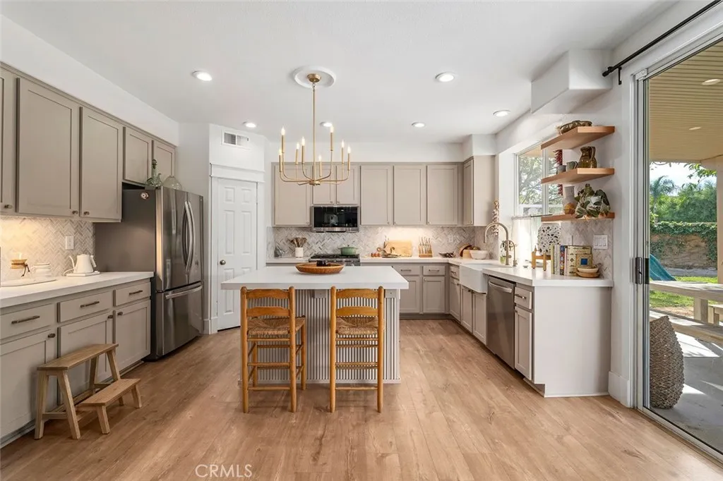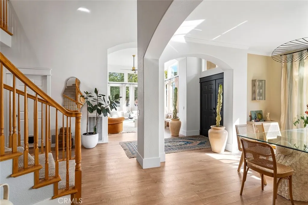 Highly upgraded pool home is priced to sell! This stunning home has been thoroughly updated inside and out and features a massive backyard with a brand-new sparkling pool and spa! And inside the home is pure eye candy, boasting new Quartz countertops throughout, luxury vinyl plank flooring, stainless steel appliances, sink fixtures, hardware, custom lighting, newer windows, paint, A/C unit, whole house fan, and more! The modernized kitchen hits all the marks, with farm sink, gorgeous warm hue Quartz countertops, and designer touches such as the chevron backsplash and soft- bronze finished hardware. From there, the kitchen connects seamlessly to the breakfast area and family room with wood-burning fireplace, creating a cozy, but open main living space. Across the hall is an updated bathroom, a bedroom, a larger formal dining area, and a light-filled, open living room, all illuminated by custom, updated light fixtures that add to the ambiance throughout. Head up the impressive staircase to a spacious loft/bonus room, perfect for a kids playroom, media room, or easily converted fifth bedroom. The primary bedroom offers extra flex-space and built-in storage, suitable for a home office, gym, or media room. The primary bathroom features a large soaking tub, a separate shower, and a large walk-in closet. There are two more bedrooms and a bathroom upstairs, all tastefully updated. The backyard is a dream come true where youll get to enjoy the SoCal sun in your new pool and spa with top-of-the-line ozone filtering, a large Alumawood-covered patio for lounging and dining under the sh