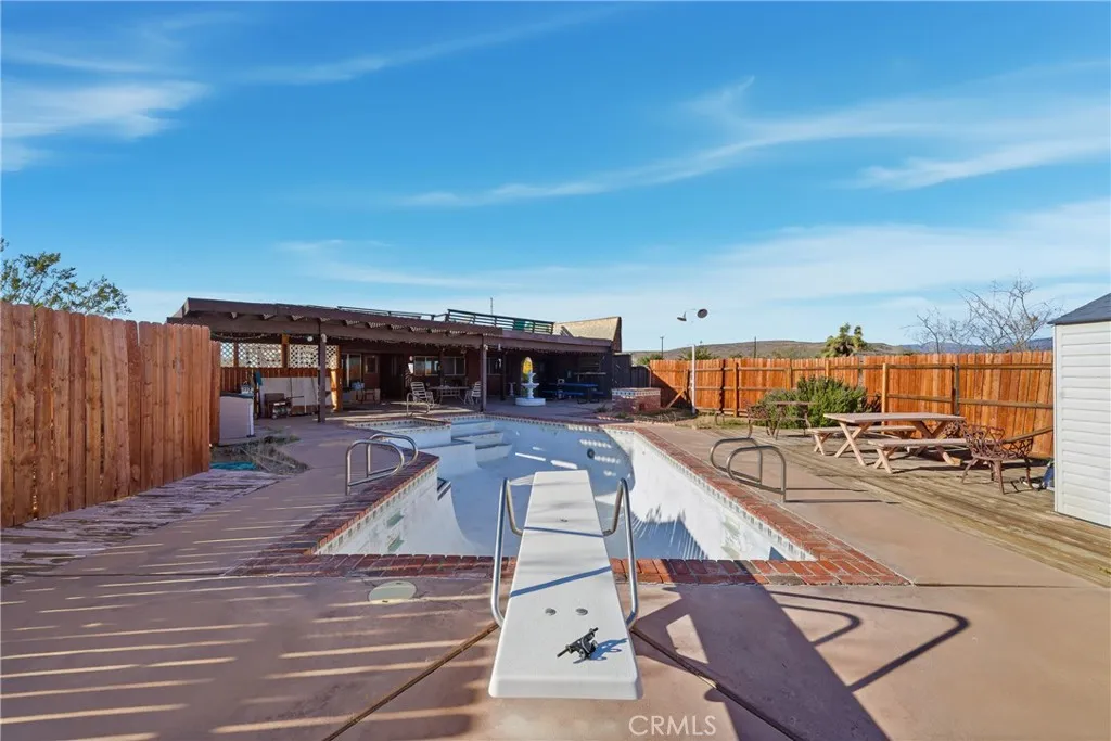 Desert Retreat on 1.82 Acres in Yucca Valley! Welcome to your next desert retreat! This spacious 1.82-acre property sits right in the heart of beloved Yucca Valleyjust a quick drive to Joshua Tree National Park, popular desert hotspots, and all the local favorites. This home is perfectly situated in the center of its fenced lot, offering a great layout and endless potential to make it your own. Inside, youll find warm wood touches and beautiful exposed wood beams that give the space a cozy, rustic feel. Step outside to enjoy a large covered patio, a deck made for lounging, a built-in BBQ, a relaxing jacuzzi, and a big pool. With a little TLC and your personal touch, this property is ready to become the ultimate getaway whether its your full-time home, weekend escape, or next creative passion project in the desert.