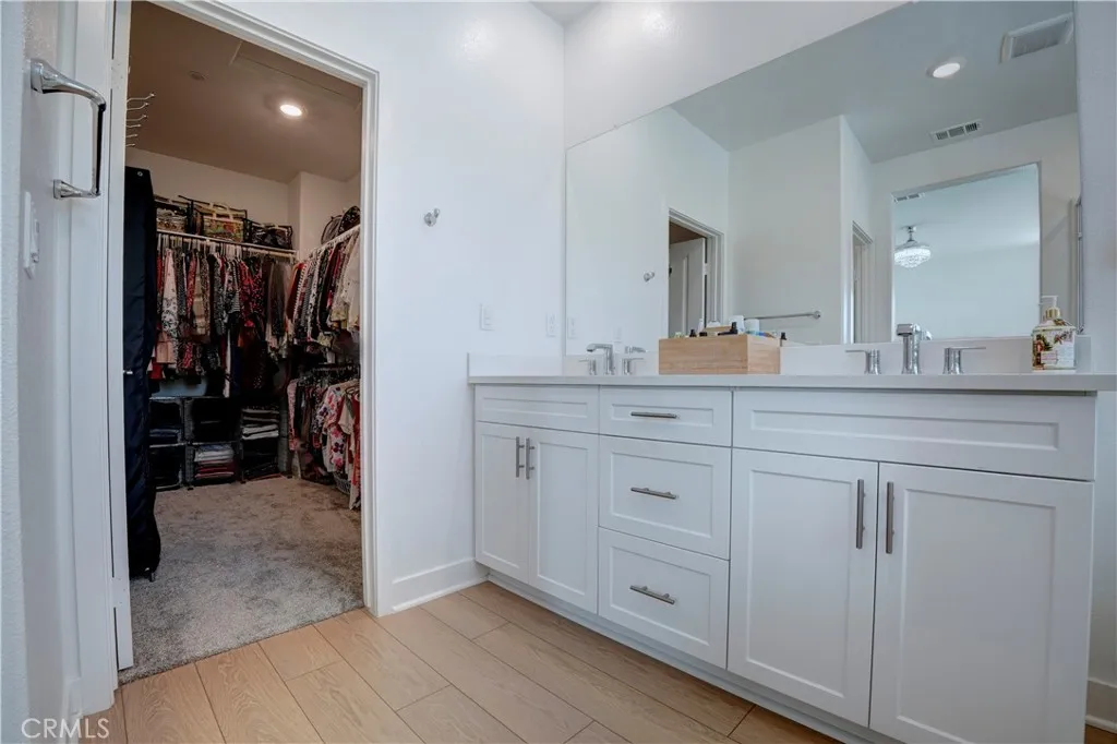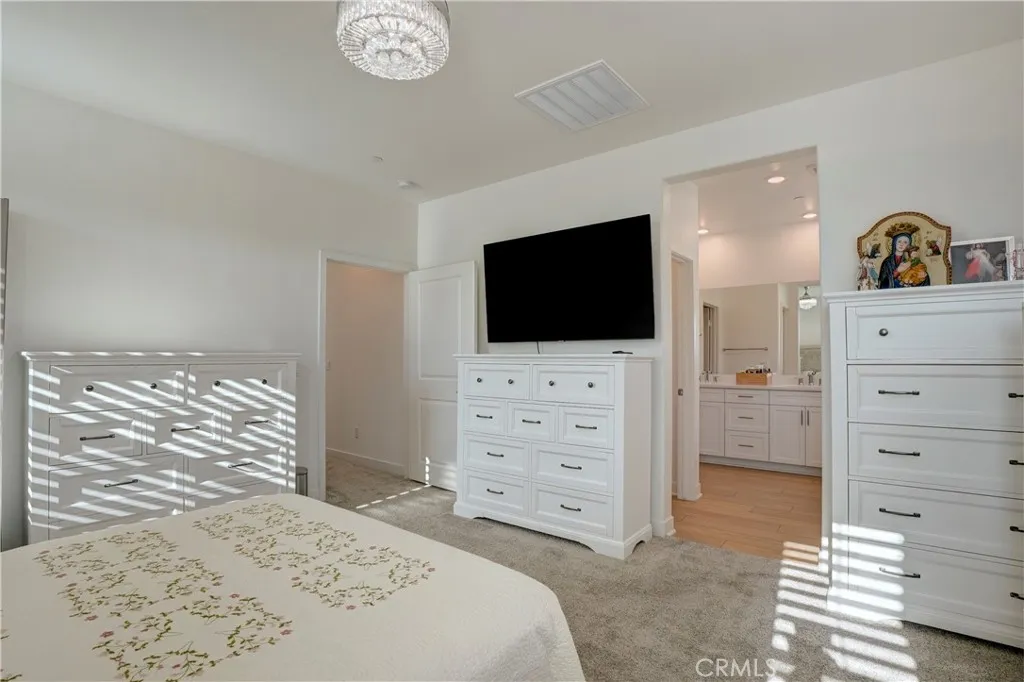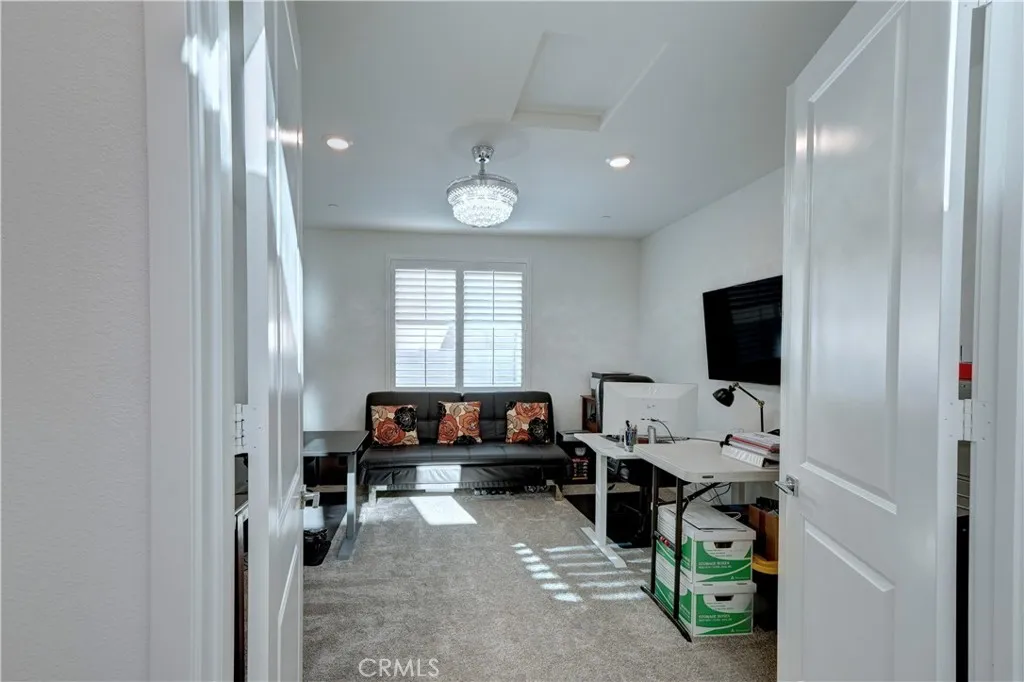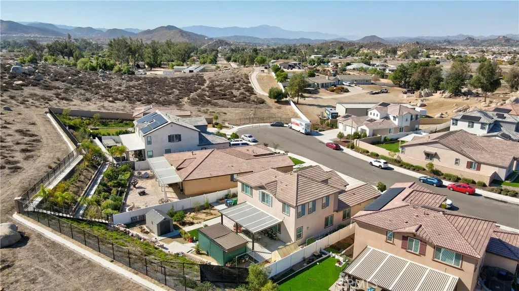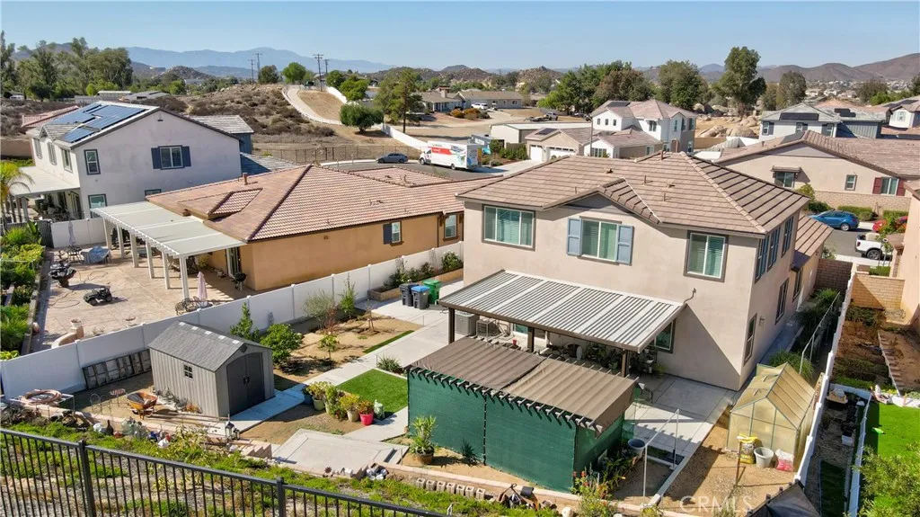 A Home of Distinction! Smart, Stylish & Exceptionally Upgraded. Where Comfort Meets Modern Efficiency. Bring your RV home and enjoy long-term energy savings with paid-off solar. Welcome to this beautifully appointed two-story residence approx. 2,649 sq. ft. featuring 4 bedrooms, including a desirable downstairs ensuite, a versatile double-door den, 3.5 baths, and a spacious tandem 3-car garage. The chefs kitchen is the heart of the home, boasting a large granite island with seating for four, stainless steel appliances including a double oven, and exceptional storage. The layout includes a formal dining area and a welcoming living room with a cozy fireplace perfect for gatherings and everyday comfort. A whole house water softener and kitchen drinking water filter. Elegant crystal chandeliers paired with a stylish ceiling fan enhance the living spaces with a touch of luxury and refined ambiance. Additional upgrades include luxury vinyl plank flooring and upgraded window coverings throughout, with plush carpet in the bedrooms and den for added comfort. The spacious master suite offers a dual-sink vanity, a large walk-in closet, and a combined tub and shower for ultimate relaxation. Convenient upstairs laundry provides ample storage space for your household needs. Step outside to a fully landscaped backyard featuring a patio slab and covered patio with lights and ceiling fan ideal for dining and lounging. Enjoy the retaining wall, planter boxes, greenhouse, flower garden, shed and an assortment of fruit trees including guava, calamondin, lemon, and olives. Located in a prime