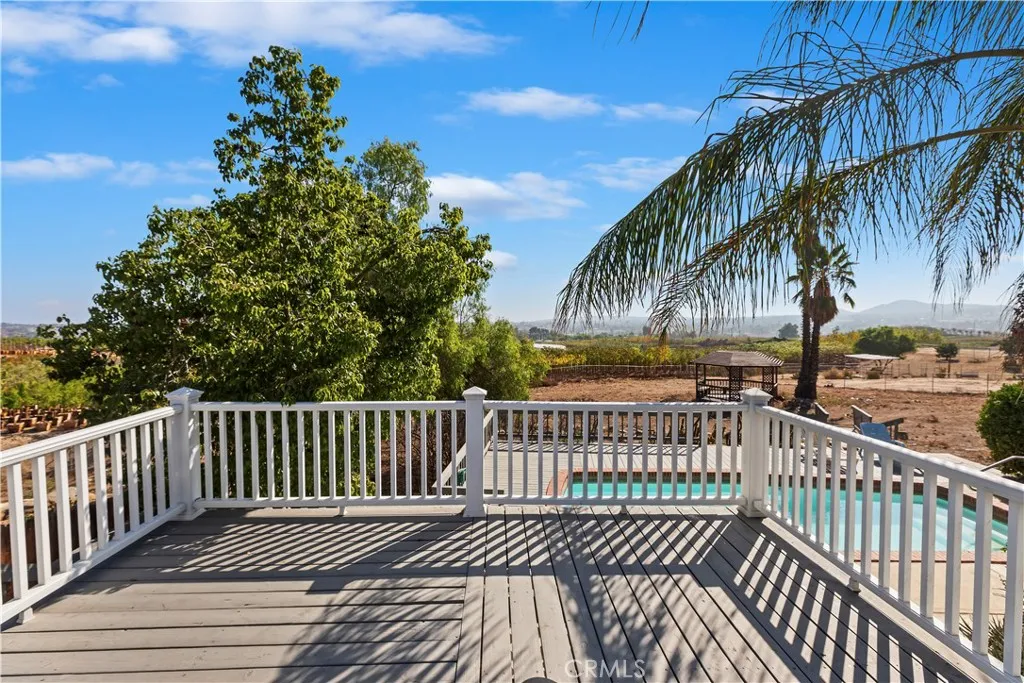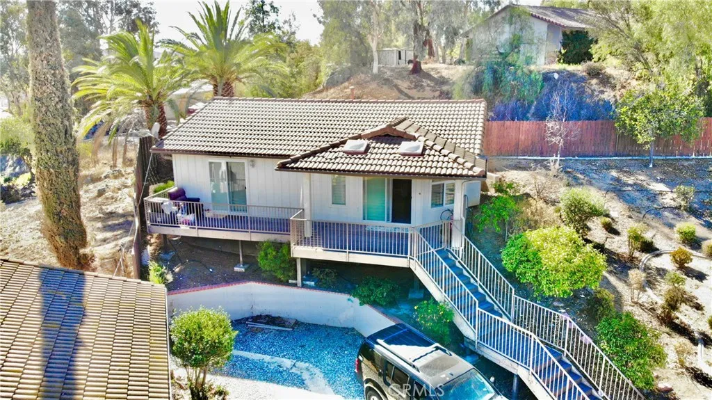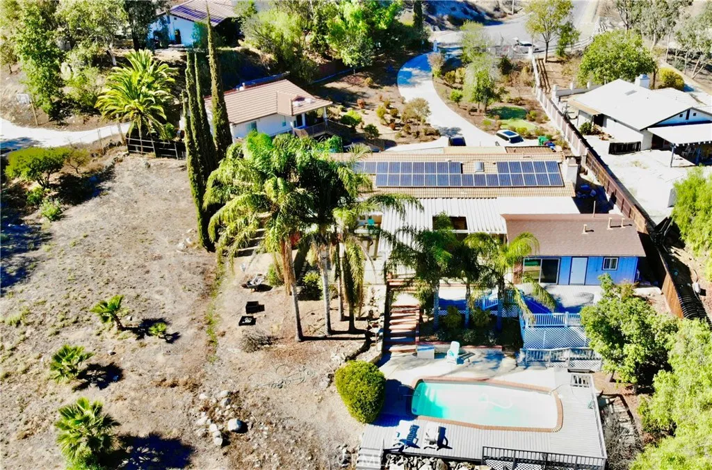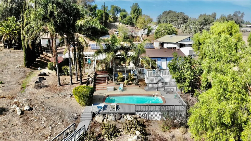 Multi-Generational Retreat | Pool | ADU | Horse Property | Solar | View Lot 19975 Heartwood Drive is a private, fully fenced single-story retreat offering exceptional versatility, comfort, and opportunity. Perfectly situated on over an acre (49,223 sq ft), this property provides a rare blend of multi-generational living, modern upgrades, and outdoor entertainingall with stunning views and a prime location bordering the highly desirable Woodcrest area (92508). The main home features 4 spacious bedrooms, 2 bathrooms, and 1,973 sq ft of open-concept living. The inviting kitchen flows seamlessly into the family room with a cozy fireplace and plantation shutters in kitchen and family room. Recent updates include new dual-pane windows, a whole-house fan, and solar panels to keep energy costs low year-round. Step outside to your resort-style backyard, complete with a putting green, gated pool, pool house with jacuzzi and full bathroom, and an expansive covered patio with an outdoor kitchenideal for entertaining family and friends. The pool house with Jacuzzi, offers potential as an additional guest suite, with full bathroom, it could be a home office, or creative studio. The property also includes a 912 sq ft detached ADU with its own kitchen, laundry room, 2 bedrooms, 1 bathroom, and a spacious living area. Enjoy privacy and tranquility from the composite deck that surrounds the ADUperfect for extended family, guests, or rental income potential.The lot is zoned for horses, offers ample space for RV parking or additional storage, and is enhanced with fruit trees and low-maintenanc