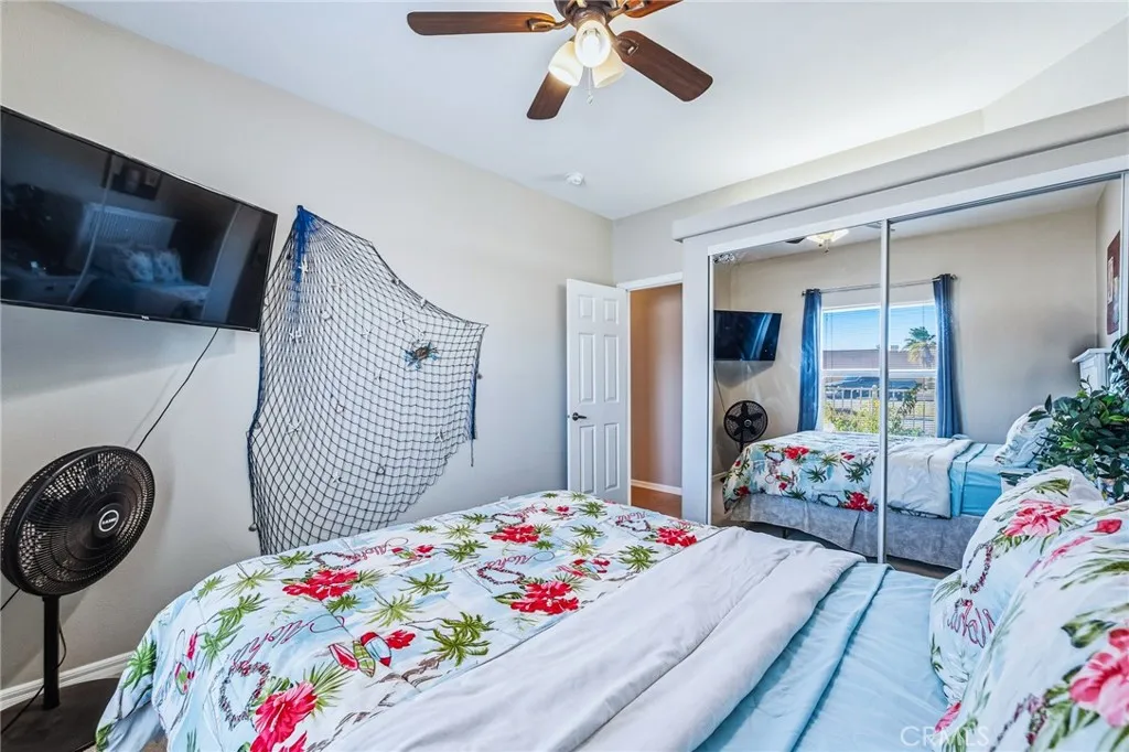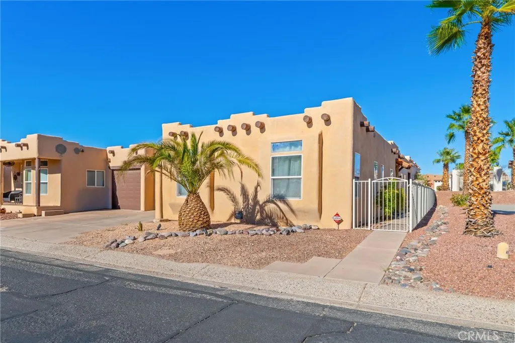 Welcome to your river retreat! This beautifully maintained 3-bedroom home, with a den that can double as a 4th bedroom, offers comfortable desert living at its finest. Bright and spacious with an open-concept layout, it features a large living room, dining area, and kitchen - perfect for entertaining or relaxing after a day on the water. Additional highlights include skylights, a separate laundry room, and a warm, inviting atmosphere throughout the community. Located in a friendly neighborhood, this home is ideal for both full-time residence and vacation getaway. The community amenities include private beaches with golf cart parking, a basketball and volleyball court, a pool, and a spa - all for the residents enjoyment. Best of all, it is just steps from the water and minutes from the Colorado River, Needles Marina, and Needles Golf Course! Step outside to a fully fenced backyard designed for entertaining or unwinding under the desert sky. Enjoy a covered patio, built-in gas and BBQ, and a cozy gas fire pit- the perfect spot to take in those peaceful, spectacular sunsets. The property also features an attached large 2-car boat garage, with interior access and a rear door for easy river access. Do not wait- this beautiful river home!