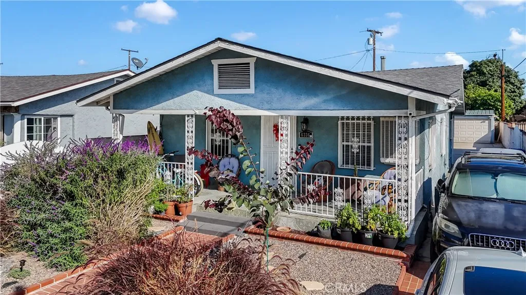 Welcome to 6336 Pala Avenue, Bell a beautifully maintained 2-bedroom, 1-bath single-family home offering 858 sq. ft. of living space on a generous 5,859 sq. ft. lot. This gated property blends comfort, functionality, and future potential, perfect for both homeowners and investors alike. Step inside to a bright living room with wood flooring, recessed lighting, and a seamless flow into the upgraded kitchen featuring quartz countertops, modern white cabinetry, and a stylish backsplash. Both bedrooms are spacious and feature brand-new carpet, while the large laundry area provides plenty of space for a corner office or extra storage. Enjoy outdoor living at its best relax on the charming front porch, or entertain by the well-maintained, gated swimming pool. The property also features an extra-long driveway and a rare four-car garage, offering ample parking and workspace options. With R3 zoning, this property presents excellent potential for future expansion or development opportunities. Located in a convenient Bell neighborhood near schools, parks, shopping, and freeway access this home truly has it all! Dont miss this unique opportunity to own a move-in-ready home with great upside potential!