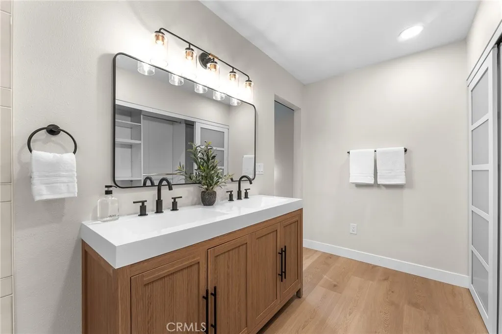 Don't miss this beautifully updated Ranch style home in a well established neighborhood of South Redlands, close to the hospital and downtown. Home sits on a large corner lot with private backyard and attached 2 car garage. Sprawling floor plan boasts large open rooms and picture windows provide ample natural light throughout. Improvements and upgrades include a new A/C unit, new roof, new windows, recessed lighting and all new interior fixtures and finishes. The kitchen is complete with large breakfast bar, FORNO appliances and it is open to the dining area/den with slider leading out to the back patio and private yard. The primary bedroom has an en-suite bath with shower, dual vanity sinks and dual closets. Dedicated laundry room is inside the garage, just off the kitchen. The entire lot is landscaped with automatic sprinklers and low water scape in front. In addition to the 2 car garage, there is RV/boat parking pad that measures approx. 15x26 feet. This one is a rare find! Don't Wait!