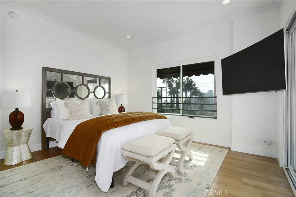 VIEWS VIEWS VIEWS! Prime Location in a SECURE GATED BUILDING W/UNDERGROUND PARKING & IN UNIT LAUNDRY. Perfectly positioned between Sunset Boulevard and Santa Monica Boulevard, this exceptional townhome-style residence sits right in the heart of everything West Hollywood has to offeryet feels worlds away from it all. Youll enjoy the convenience of being just moments from world-class dining, nightlife, shopping, and entertainment, all while tucked into a quiet, ultra-private complex with no street noise. This intimate community features very little turnover, making this a rare opportunity to own in one of West Hollywoods most sought-after low-density buildings. Unit 205 is ideally located at the rear of the complex, ensuring peace and privacy. Unlike typical condos, this two-story townhome layout offers the feeling and flow of a single-family home. The open, light-filled floor plan feels spacious and voluminous, with large windows, PRIVATE BALCONY FROM THE LIVING AREA, and bright exposures throughout. Featuring Stylish Interiors & Thoughtful Design this home features two ensuite bedrooms, each with generous closet space, access to a PRIVATE BALCONY & JAW DROPPING CITY VIEWS.The primary suite enjoys excellent natural light, while both bedrooms provide privacy and comfort. The interior is fresh, move-in ready, and filled with storage, ideal for effortless living.