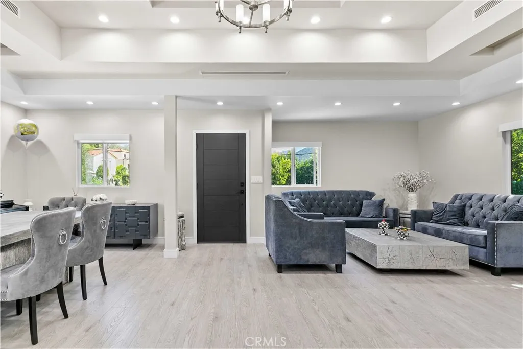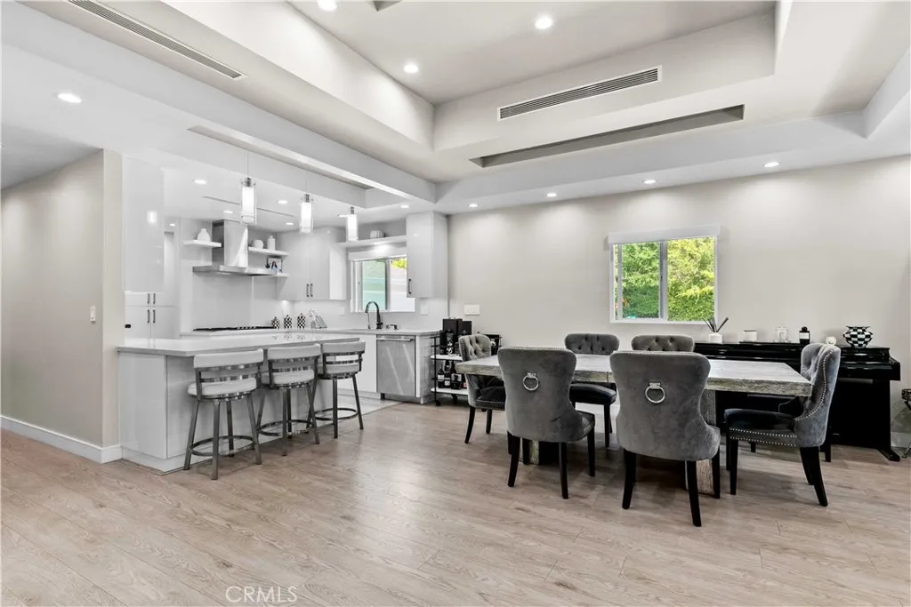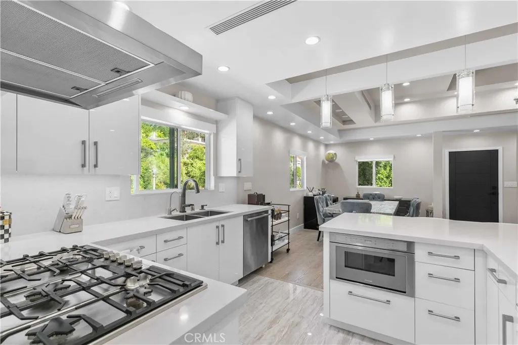 This beautifully fully remodeled 3-bedroom, 2-bath home combines modern design with everyday comfort. Step inside to an open-concept layout where the chefs kitchen flows seamlessly into the dining and living spaces. The kitchen features sleek white cabinetry, quartz countertops, a spacious island with bar seating, and contemporary pendant lightingideal for both entertaining and casual family meals. The dining area is framed by tray ceilings, recessed lighting, and large windows that fill the space with natural light, creating a bright and welcoming atmosphere. Elegant flooring runs throughout, complementing the homes clean lines and modern finishes. Good sized bedrooms, including a private primary suite, offer comfortable retreats with updated bathrooms featuring stylish tile work and fixtures. Junior ADU permits and drawings are available, it is approved and is ready for the new buyer to build. Located in a desirable neighborhood, this home is close to schools, shopping, dining, and freeway access, making it the perfect balance of convenience and style.