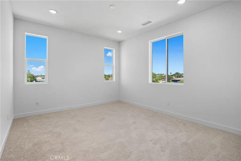 Discover elevated living at Townes at Orange, an exclusive enclave of just 24 brand-new townhomes offering modern design and a prime location near shopping, dining, and major freeways. This move-in ready Plan 4X home features 3 bedrooms + a den, 2 full baths, and 2 half baths across approximately 1,971 sq. ft. of beautifully designed space. Nestled toward the back of the community for added privacy, this upgraded end-unit home offers a bright, open-concept layout perfect for modern living. Enjoy a spacious great room that flows seamlessly into a private balcony, ideal for relaxing or entertaining. The chef-inspired kitchen shines with quartz countertops, a large island, stainless steel appliances, white shaker cabinetry, and designer finishes throughout. The thoughtful floorplan includes a first-floor bedroom with a full bath for guests or a home office, while the upstairs den adds versatility for your lifestyle needs. Additional highlights include walk-in closets, an indoor laundry room with side-by-side hookups, smart home features like a Ring doorbell and smart thermostat, and carefully curated upgrades that bring sophistication and comfort to every space. Move in today and experience the perfect blend of style, convenience, and community living at Townes at Orange.