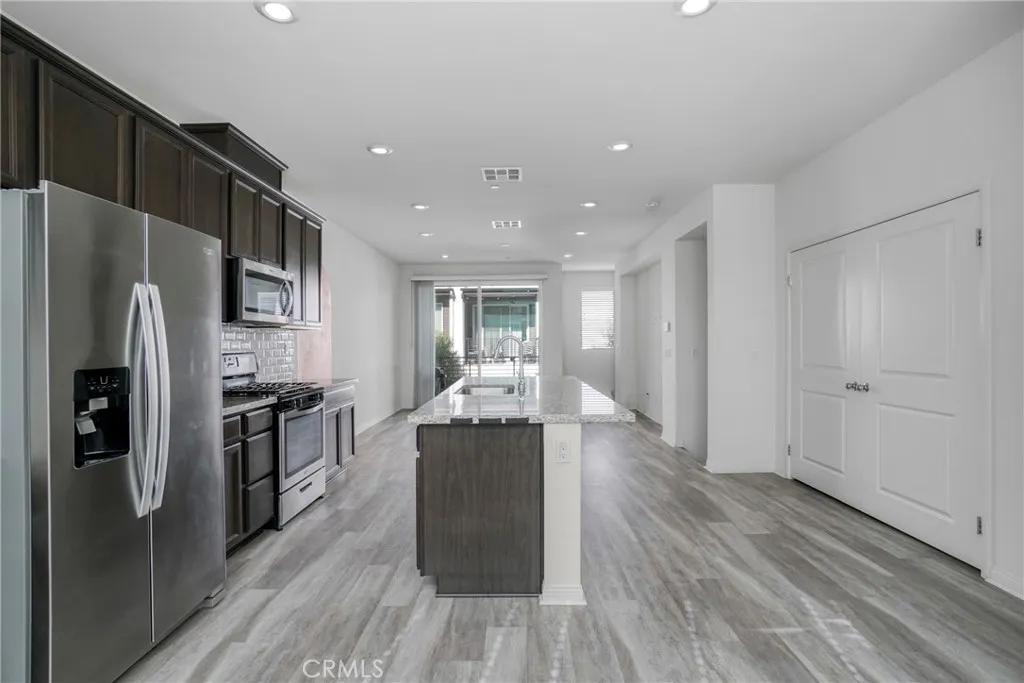 Modern Northridge Single Family Residence in Planned Community Built in 2020, this stylish 3-bedroom, 3.5-bath tri-level home offers 1,657 sq.ft. of beautifully designed living space in a desirable planned unit development in Northridge. The lower level features a private bedroom and full bath perfect for guests, a home office, or multi-generational living. On the main level, enjoy an open-concept layout with a stunning granite kitchen, rich mocha cabinets, and stainless steel appliances including a refrigerator, dishwasher, microwave, and freestanding oven. The oversized granite island with USB ports provides additional seating and prep space, while recessed lighting and high ceilings create a bright, modern feel. A convenient half bath for guests and a private balcony complete this level ideal for entertaining or relaxing. The third level offers two ensuite bedrooms. The primary suite includes a luxurious bath with dual sinks, while the secondary bedroom features its own private full bath. Energy-efficient features include seller owned solar panels, dual-pane windows, a smart 2-zone AC controller, and a tankless water heater keeping comfort high and utility costs low. Additional highlights include laminate flooring throughout, keyless front entry, a Bluetooth-enabled garage door opener, and an attached two-car garage with direct access. Located in the heart of Northridge, this home sits in the middle of the community with a peaceful greenbelt view, just steps from public transportation and close to Cal State Northridge, Northridge Mall, restaurants, and shopping. Exper