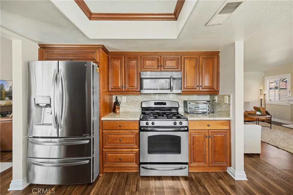 Welcome to your dream home in the heart of Alta Loma, where breathtaking mountain views and timeless design come together in perfect harmony. From the moment you arrive, youll feel the pride of ownership in every detail of this beautifully remodeled residence. Step inside to find natural light pouring in through large windows dressed with plantation shutters, complementing the gorgeous dark hard-surface flooring throughout the main level. The custom kitchen is a showstopper, featuring granite countertops, stainless steel appliances, rich cabinetry, and a breakfast nook ideal for morning coffee. A formal dining room offers the perfect setting for gatherings with family and friends. Downstairs, youll find a full bedroom and bathroom, perfect for guests or multi-generational living. Upstairs, the primary suite features high ceilings, plantation shutters, and a fully remodeled spa inspired bathroom with elegant finishes and a relaxing atmosphere. Every bathroom in the home has been tastefully updated for a modern, fresh feel. The backyard is your private retreat complete with an outdoor fireplace, patio for entertaining, and an above ground spa where you can unwind under the stars. With RV parking and a 3 car garage, theres plenty of room for all your toys and hobbies. Located in the highly desirable Los Osos High School District, this home offers easy access to the 210 freeway, Pacific Electric Bike Trail, shopping, and dining. Dont miss your chance to own this turnkey Alta Loma gem where comfort, style, and location come together to create the ultimate home of you've been wai