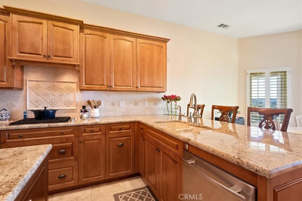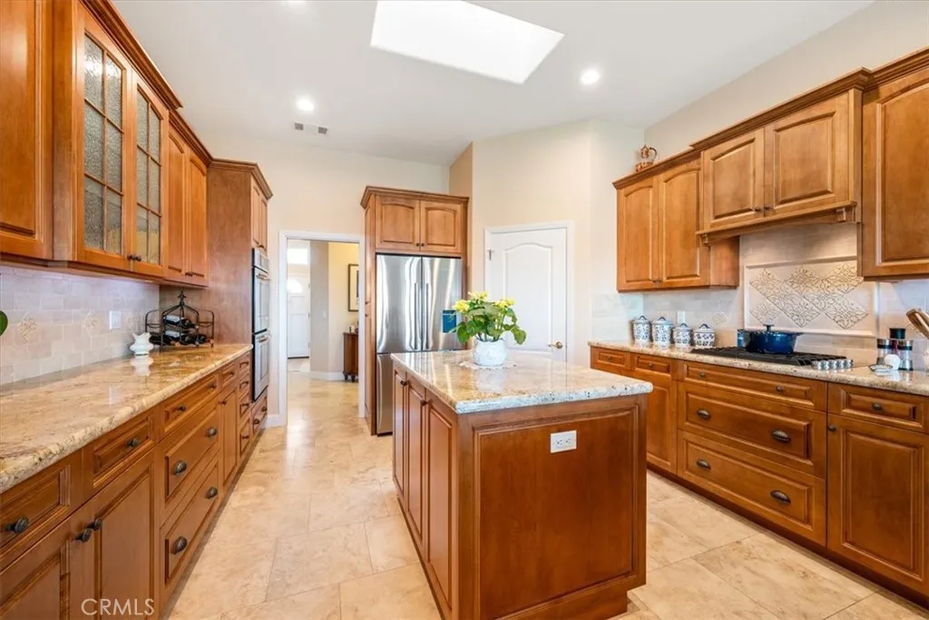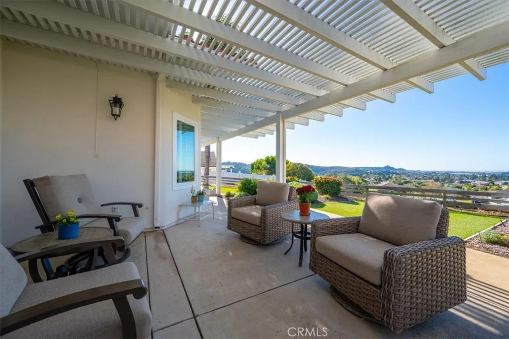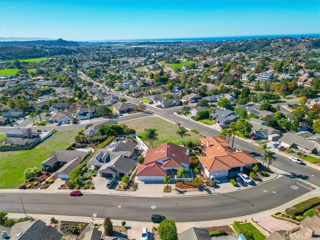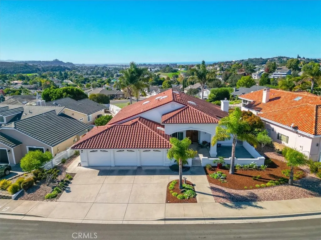 Immaculate single-level, three-bedroom, two-and-a-half-bath Mediterranean-style home located in the desirable Stagecoach neighborhood near the village of Arroyo Grande. Offering 2,660 square feet of thoughtfully designed living space, this property combines quality craftsmanship with relaxed Central Coast living. The remodeled kitchen features high-end appliances, hardwood cabinets, granite countertops, travertine and handmade tile backsplashes. A spacious pantry provides ample storage, while the peninsula bar opens to a welcoming breakfast nook framed by bay windows. The adjoining living and dining rooms include French oak flooring, cathedral ceilings, and a thermostatic gas fireplace that adds warmth and character. Milgard dual-pane windows and French doors fill the space with natural light and lead to a lattice-covered patio with views of the hills, dunes, and ocean beyondan inviting setting for entertaining or quiet evenings outdoors. The primary suite includes a remodeled bath with marble counters and Kohler fixtures, while the home office and additional bedrooms offer flexibility for guests or creative pursuits. A separate laundry room adds convenience, and a spacious three-car garage provides abundant parking and storage. Additionally, the home features a welcoming front courtyard, low-maintenance landscaping, air conditioning, and skylights that enhance comfort and efficiency. Every detail reflects care and quality, creating a home that is both beautiful and meticulously maintained. Located within the Lucia Mar School District, including Branch Elementary, Paulding