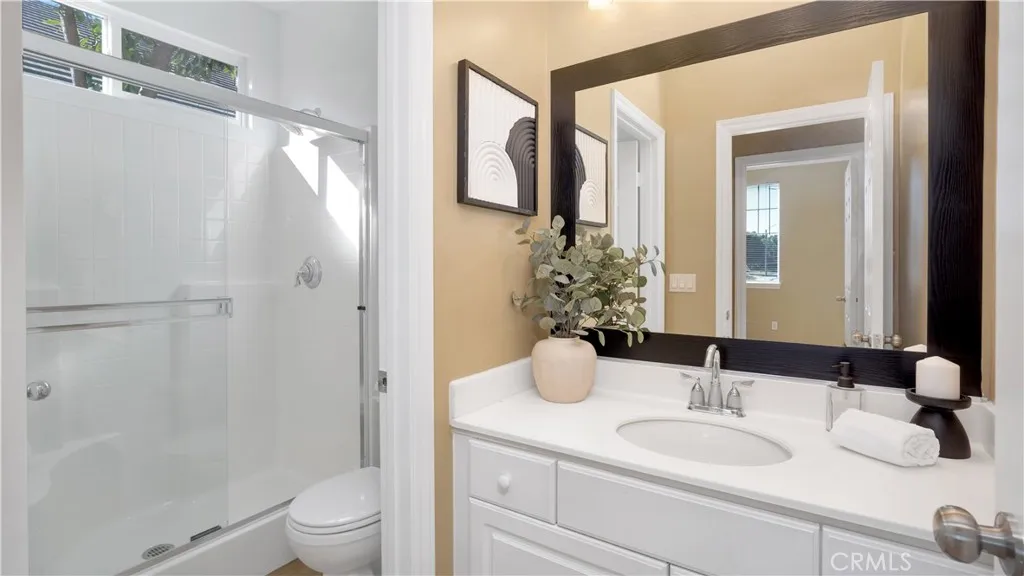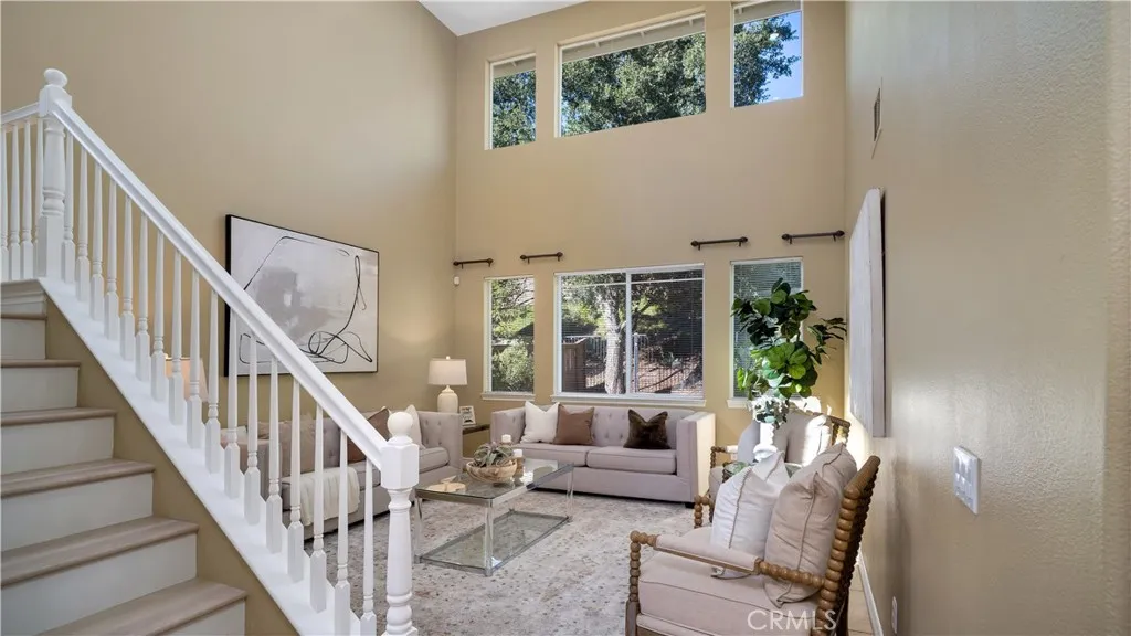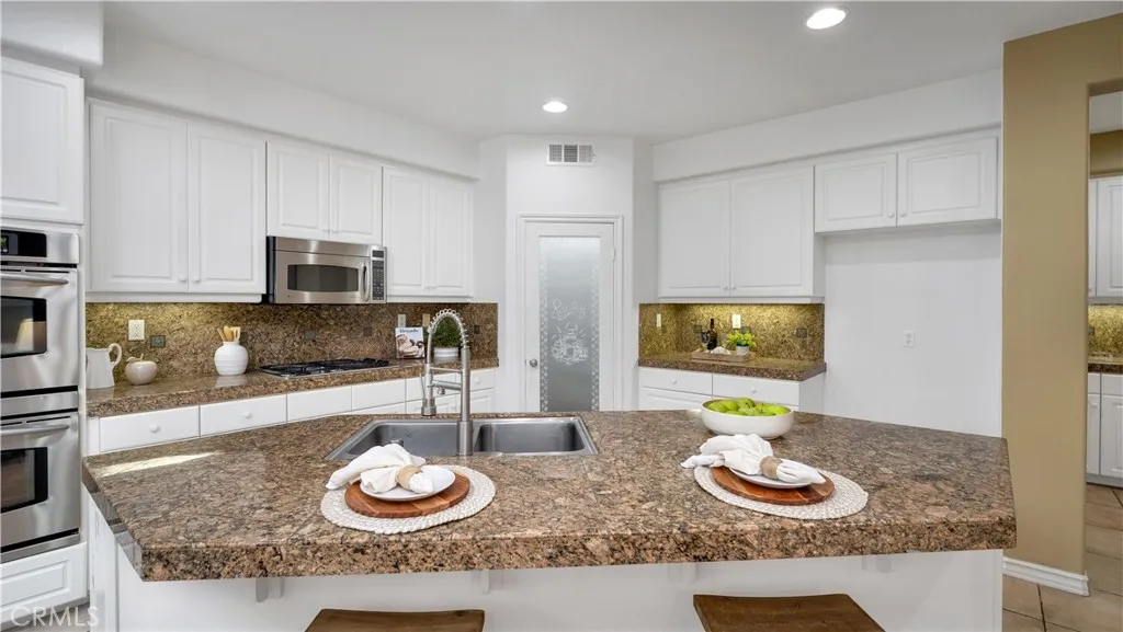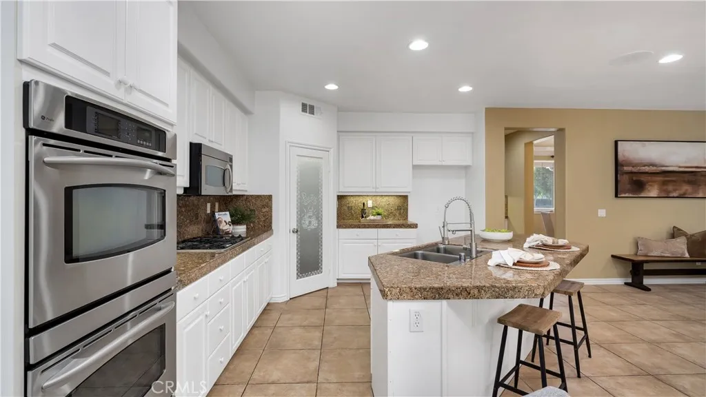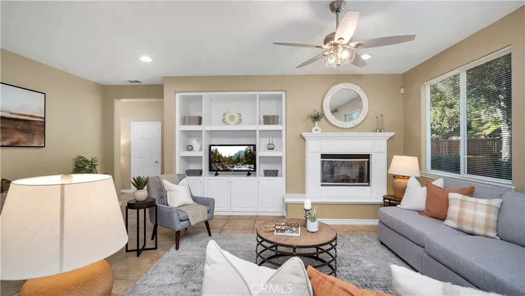 Designed for modern living and timeless appeal, this FORMER MODEL HOME blends sophistication, functionality, and serene surroundings in one of Wildomars most desirable neighborhoods. Overlooking the TRANQUIL RESERVOIR, this 4-BEDROOM, 3.5-BATH residence showcases VAULTED CEILINGS, abundant NATURAL LIGHT, and an OPEN-CONCEPT layout that creates an immediate sense of scale and flow. The MAIN LEVEL features a FULL BEDROOM and BATHROOM, ideal for guests or multi-generational living, along with a FORMAL DINING ROOM and a SPACIOUS FAMILY ROOM that connects seamlessly to the CHEF'S KITCHEN. Outfitted with GRANITE COUNTERTOPS, a CENTER ISLAND, STAINLESS STEEL APPLIANCES, tile flooring, and a WALK-IN PANTRY, the kitchen serves as the heart of the home and the perfect setting for everyday living and entertaining. Upstairs, NEW LAMINATE FLOORING extends throughout, complementing the luxurious PRIMARY SUITE that offers DUAL VANITIES, a SOAKING TUB, a separate WALK-IN SHOWER, and a generous WALK-IN CLOSET. Two secondary bedrooms, a full bath, and an EXPANSIVE BONUS ROOM WITH BALCONY ACCESS provide flexible living options, while a BUILT-IN WORKSTATION creates an ideal workspace or study area. Outside, the EXPANSIVE BACKYARD offers endless potential for outdoor entertaining and relaxation, with ample space to design your dream patio, garden, or pool to take full advantage of the homes peaceful HILLSIDE. Located in a quiet, well-maintained community known for its pride of ownership, this residence delivers the perfect balance of space, comfort, and timeless appeal, all within reach of loca