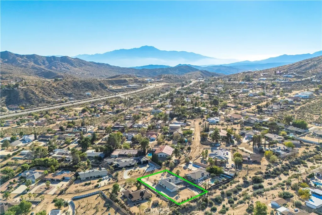 Your dream home awaits in this gorgeously appointed 3 bedroom, 2 bath home situated on just under 1/2 acre of land in the highly desirable Country Club area of Yucca Valley. As you approach the home, you'll love that the neighborhood is tucked close to the majestic desert hills that frame the valley, and appreciate the attached 2 car garage. Sleek, ultra-modern finishes greet you as you enter the home, which has been tastefully updated throughout. The massive main living area enjoys large windows to let in plenty of natural light, an impressive 0 clearance fireplace, and stylish lighting. Polished concrete flooring flows throughout the space, adding to the clean styling of the home. The kitchen is beautifully appointed with quartz waterfall countertops, modern wood cabinetry and all new stainless steel appliances - including a gas range and second oven for the discerning chef. A spacious room off the main living space is perfect for a bonus room or formal dining area, and features high wood-beamed ceilings and two sliding glass doors to access the outdoor living space. Moving on, you'll note the conveniently located laundry room with its own outside access as well. The guest bath continues the theme of modern style with a floating vanity and glass-doored walk-in shower, and each guest bedroom is airy and well let with plenty of closet space. The primary bedroom is huge with large windows and an attached bath with another floating vanity with full tile backsplash, large walk-in glass shower, and closet. Book a showing to experience this beautiful desert sanctuary for yoursel