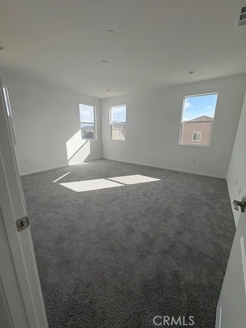 Welcome to the Presley floorplan here in Legacy at the Braverde masterplan in Menifee. It's the final phase and only a few homes remain! As you enter, a 2 story ceiling entry welcomes you. The main floor offers an expansive great room, a beautiful sunroom that lets the light in, a gourmet kitchen w/ white cabinets, quartz counters w/full tile backsplash, under cabinet lighting, walk-in pantry and an immense center islandperfect for entertaining and a cook's dream come true! The whole house has tall 8-foot doors, tons of recessed lighting and ceiling fan prewires in great room, loft and all bedrooms. Flooring includes wood laminate on the main level, 12 x 24 tile flooring in bathrooms & laundry room and upgraded carpet in hallways, stairs and all bedrooms. A convenient first floor bedroom and full bathroom w/walk in shower and a spacious 2-car + storage garage completes the first level of the home. This home also features an open stair railing leading up to the second level where you'll find a large loft and three inviting bedrooms, each with their own walk in closets and a luxurious owner's suite complete with a separate shower and soaking tub. This home includes owned Solar and is turnkey! Visit today!