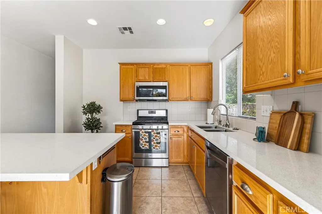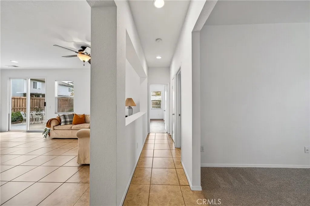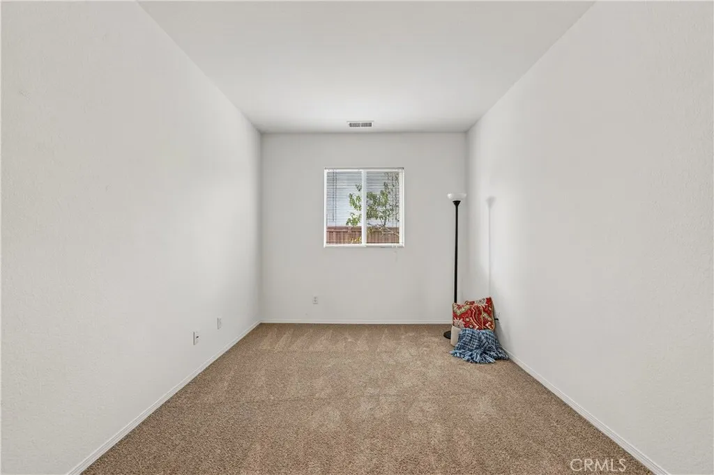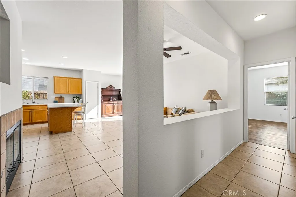 Welcome to 31619 Umbria Lane in the heart of French Valley, California! This beautiful Mediterranean-style single-story home offers the perfect blend of comfort, functionality, and charm. Featuring 3 bedrooms, 2 full bathrooms, and an inviting bonus/flex room, this home provides plenty of space for every lifestyle. Step inside to a bright, open entryway that flows into a spacious formal living and dining room, ideal for gatherings and hosting. The open-concept kitchen overlooks the family room and is designed for entertainingcomplete with stainless steel appliances, quartz countertops with kitchen island featuring custom pullout shelving, abundant cabinetry, and a cozy fireplace that anchors the space. Enjoy the fresh feel of new interior paint, new carpet, and classic tile flooring throughout. Two generous guest bedrooms are conveniently serviced by a full guest bathroom, while the bonus room offers the flexibility to be a home office, playroom, or even a potential fourth bedroom. The primary suite is a true retreat, featuring a dual-sink vanity, separate soaking tub and shower, and a large walk-in closet. Step outside to a peaceful, private backyard designed for relaxation and outdoor living. Youll find a lush grassy area, beautiful landscaping with mature fruit trees (mandarin orange, plum, peach, table grapes, and apricots), raised garden planters, and a spacious concrete patio complete with a shaded pergola and bar-height countertopthe perfect place to entertain family and friends. Additional side-yard space offers even more room for storage. A rare single-story in a h
