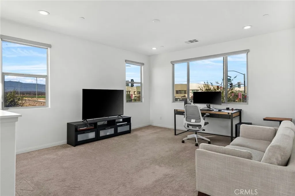 Welcome to this beautifully maintained two-story property located in the Cascade at West Haven community of Ontario Ranch. Designed for modern lifestyles, this spacious 5-bedroom, 4-bath home features approximately 2,830 square feet of well-planned living space with quality finishes throughout. The first floor presents an open layout that connects the living area, dining space, and modern kitchen. The kitchen is equipped with quartz countertops, stainless-steel appliances, a large center island with bar seating, and a generous walk-in pantry. A versatile media room on the main level provides an ideal setting for entertainment, gatherings, or study. The backyard located just beyond the great room creates a comfortable outdoor space for relaxation or dining. Upstairs, all bedrooms are arranged for privacy and comfort. The primary suite includes a walk-in closet and a private bath with dual vanities, a soaking tub, and a separate shower. Secondary bedrooms are bright and well-sized, and a spacious loft adds flexibility for multiple uses. A conveniently located laundry room completes the upper level. Additional highlights include recessed lighting, dual-pane windows, and an attached two-car garage with direct access. The Cascade at West Haven community features a picnic area, BBQ facilities, and professionally maintained common grounds. Located near major freeways, shopping centers, dining options, schools, and recreation areas, this home combines modern design with a convenient Ontario Ranch location.