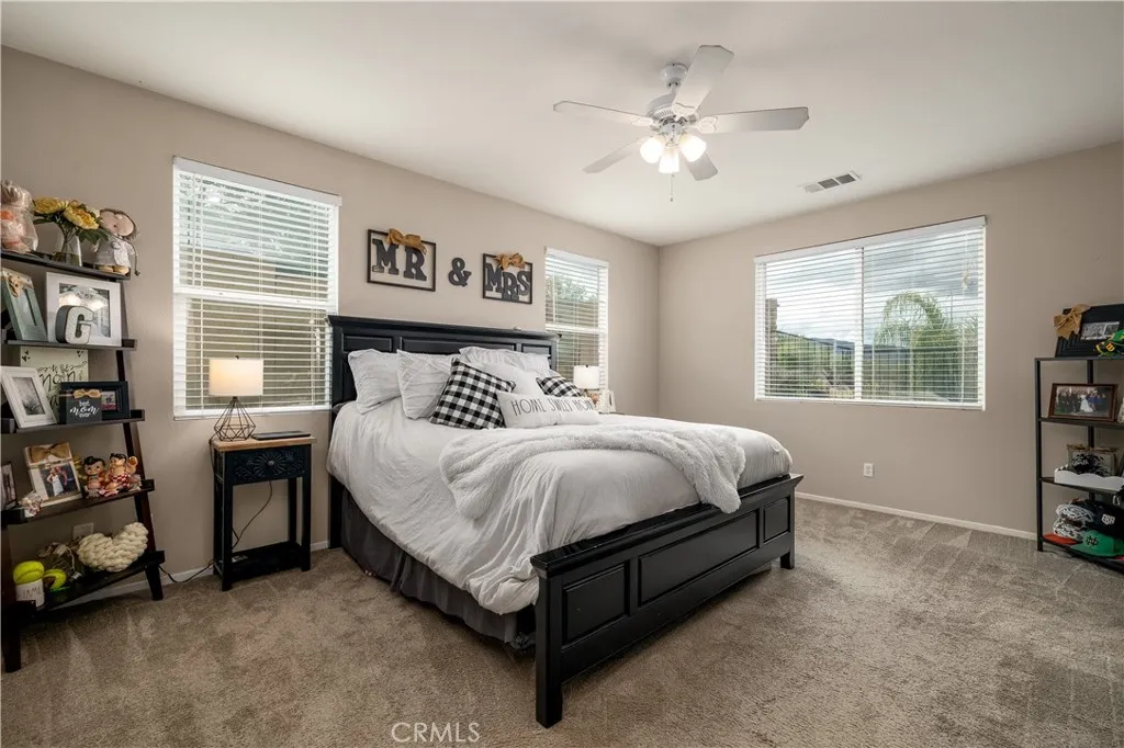 Welcome to this immaculate single-story turnkey residence located in the highly sought-after Sycamore Creek community. Situated at the end of a quiet cul-de-sac, this beautifully maintained home offers exceptional privacy and stunning mountain views. Featuring 3 bedrooms, a spacious FLEX space, and 2.5 baths, the home showcases an open-concept layout filled with natural light. The expansive great room flows seamlessly into the gourmet kitchen, complete with a large center island, granite countertops, stainless steel appliances, elegant pendant lighting, and crisp white cabinetrya perfect space for everyday living and effortless entertaining. The private primary suite includes a soaking tub, dual vanities, a walk-in closet, and a separate shower. Three additional generously sized rooms, a full bath with dual sinks, and an indoor laundry room offer both comfort and convenience. This move-in-ready home has been thoughtfully upgraded throughout, featuring PAID solar, a full suite of smart home features (doorbell camera, smart front-door lock, Nest thermostat, smart irrigation, and smart garage door), premium interior paint, durable ceramic wood-look tile flooring, carpet in the bedrooms, upgraded baseboards, and a deep stainless steel farmhouse sink. The low-maintenance backyard includes pavers. Residents of Sycamore Creek enjoy resort-style amenities, including a clubhouse with kitchen, three community pools with water play area, a fitness center, sports fields, tennis and basketball courts, skate, dog, and pocket parks, hiking trails, BBQ areas, and picnic spacesall with low