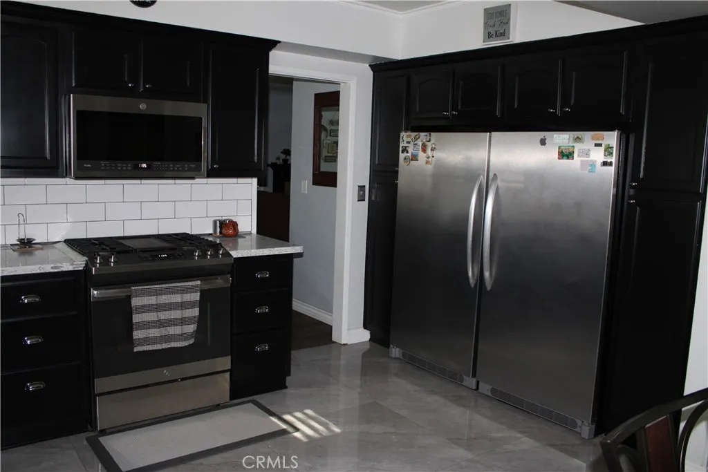 Updated contemporary North Ontario corner-lot home featuring 3 bedrooms and 2.5 baths and no HOA. Inside, youll find both a formal dining room and a cozy eat-in kitchen with a butcher-block island and tiled floors. The kitchen is enhanced with quartz countertops, a farmhouse sink, microwave, and dishwasher. Ceiling fans are installed in every room for added comfort, and all bedrooms offer natural wood flooring. Both full bathrooms feature glass walk-in showers, and the primary bedroom includes a sliding glass door with direct access to the backyard. Enjoy two fireplacesone in the living room and another in the spacious entertainment room. The entertainment room also opens through a sliding glass door to a beautifully maintained yard. The landscaped backyard includes orange and lemon trees and automatic sprinklers in both the front and back yards. The fully enclosed backyard, secured with an electric gate, provides ample space for RV storage and includes a Tuff Shed for additional storage. Spend evenings under the pergola or in the covered outdoor kitchen. This home also features a security monitoring system that captures the entire outdoor area.